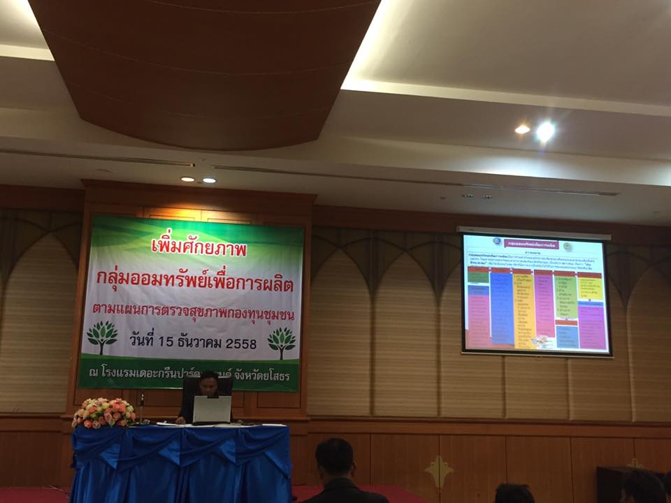นายดิเรก ธรรมฤทธิ์. พัฒนาการจังหวัดยโสธร มอบหมายกลุ่มงานส่งเสริมการพัฒนาชุมชน อบรมพัฒนาศักยภาพกลุ่มออมทรัพย์เพื่อการผลิตตามแผนการตรวจสุขภาพทางการเงินกองทุนชุมชน. (กลุ่มออมทรัพย์เพื่อการผลิตสีขาว). กลุ่มเป้าหมาย 30 คน ณ รร.เดอะกรีนปาร์คแกรนด์. อำเภอเมืองยโสธร