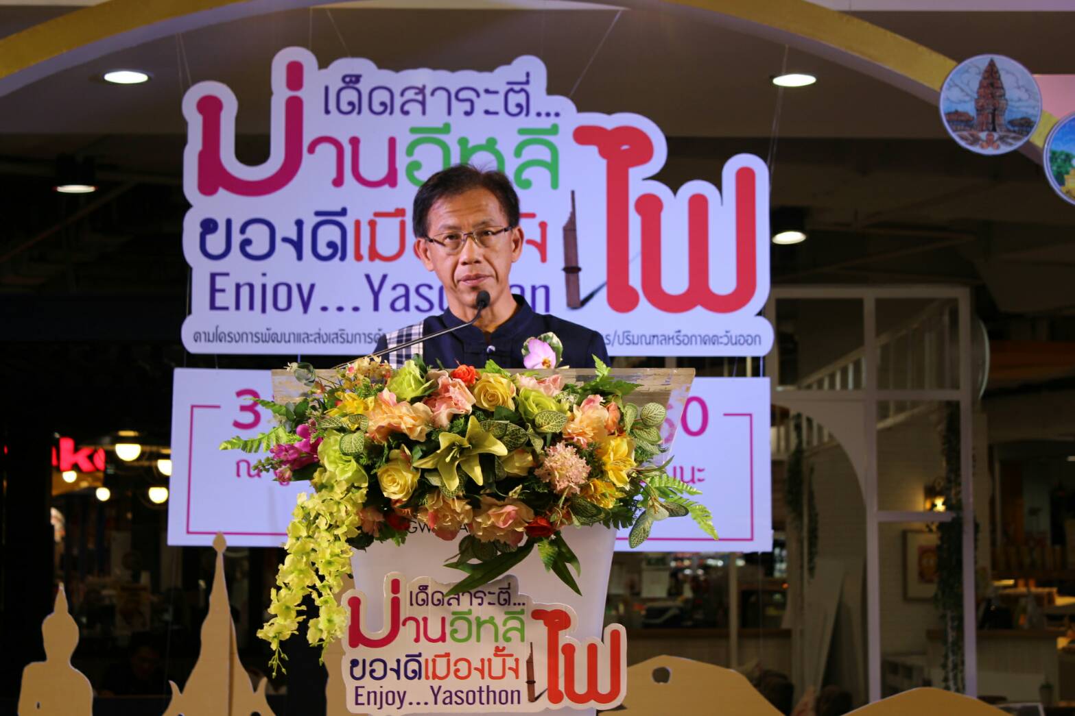 นายบุญธรรม เลิศสุขีเกษม ผู้ว่าราชการจังหวัดยโสธร เป็นประธานการเปิดงาน” เด็ดสาระตี่ ม่วนอีหลี ของดีเมืองบั้งไฟ Enjoy Yasothon (มีผลิตภัณฑ์ Otop จาก กลุ่มจังหวัดภาคตะวันออกเฉียงเหนือ ตอนล่าง 2 ยโสธร อุบลราชธานี ศรีสะเกษ และอำนาจเจริญ) ระหว่างวันที่ 31 สค.- 4 กย.60(5 วัน) ณ ศูนย์การค้าเซ็นทรัลพลาซา แจ้งวัฒนะ จ.นนทบุรี โดยมี นายดิเรก ธรรมฤทธิ์ พัฒนาการจังหวัดยโสธร กล่าวรายงาน มีผู้แทนจากหน่วยงานพาณิชย์จังหวัดยโสธร ผู้แทนพัฒนาการจังหวัดอำนาจเจริญ และทีมงานพัฒนาชุมชนจังหวัด 4 จว.ร่วมเป็นเกียรติในพิธีเปิดฯ