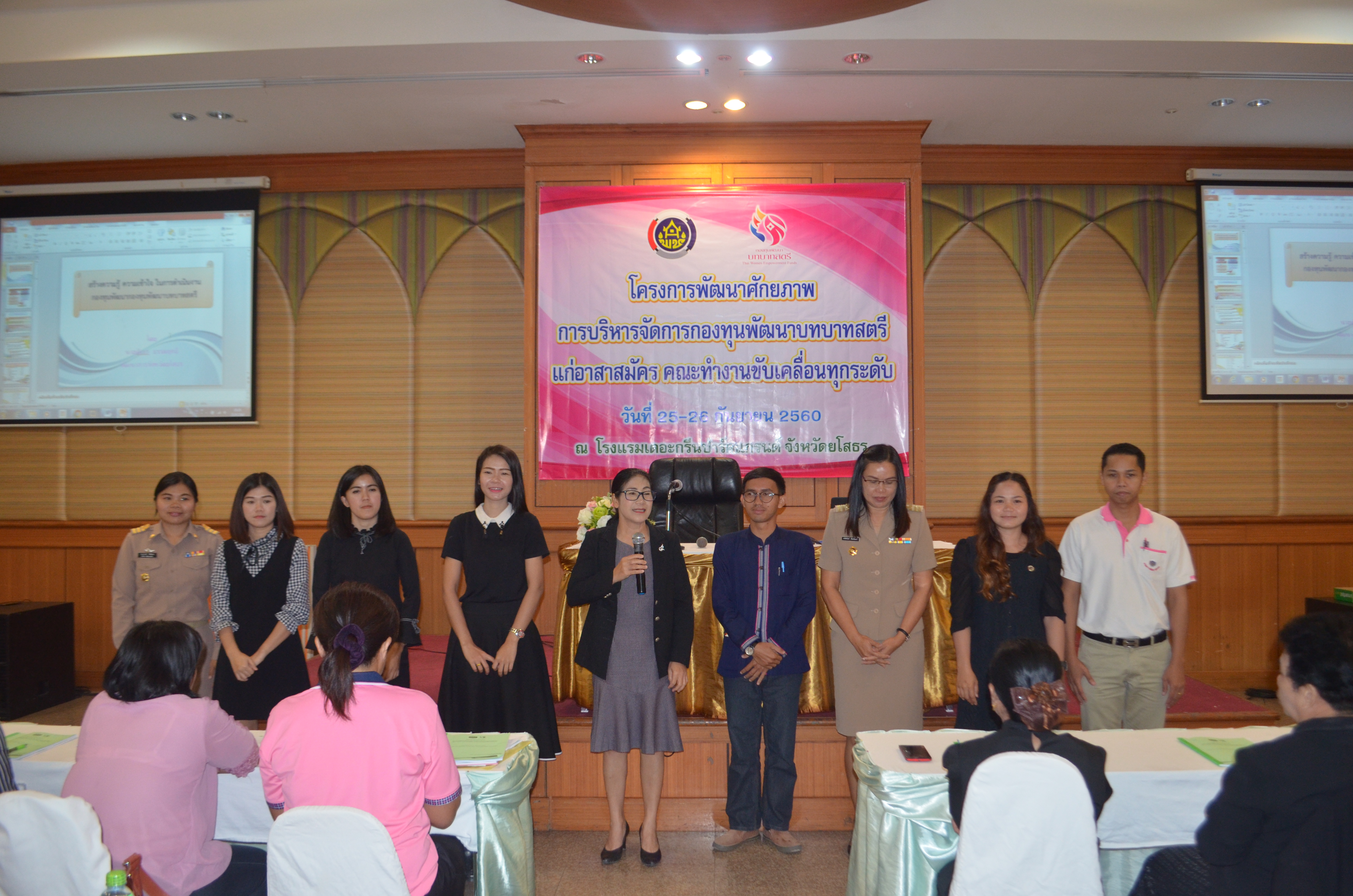 – เวลา 09.30 น. นายดิเรก ธรรมฤทธิ์ พัฒนาการจังหวัดยโสธร มอบหมายให้ นางสาวขันทอง อินทร์หา หน.กลุ่มงานยุทธศาสตร์การพัฒนาชุมชน บรรยาพิเศษ นโยบายการบริหารจัดการกองทุนพัฒนาบทบาทสตรีจังหวัดยโสธร ตาม
