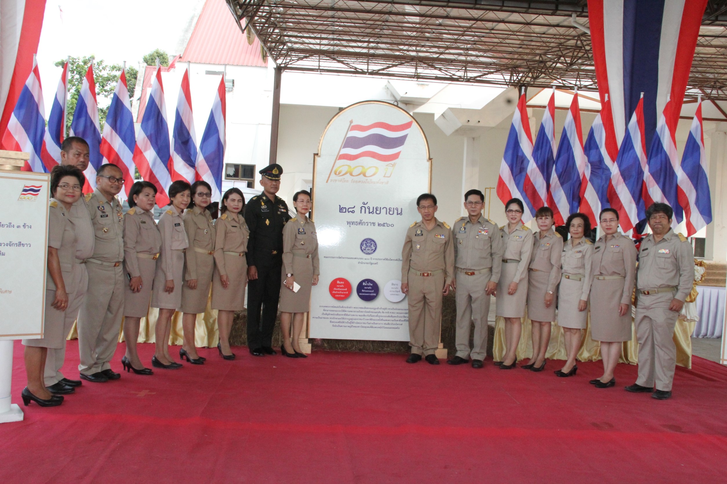 ายบุญธรรม เลิศสุขีเกษม ผู้ว่าราชการจังหวัดยโสธร เป็นประธานในการเชิญธงชาติและร้องเพลงชาติไทย เนื่องในโอกาสครบรอบ 100 ปี ธงชาติไทย หน้าเสาธง ศาลากลางจังหวัดยโสธร ในการนี้ นายดิเรก ธรรมฤทธิ์ พัฒนาการจังหวัดยโสธร พร้อมด้วย เจ้าหน้าที่พัฒนาชุมชน เข้าร่วมพิธีในครั้งนี้ด้วย