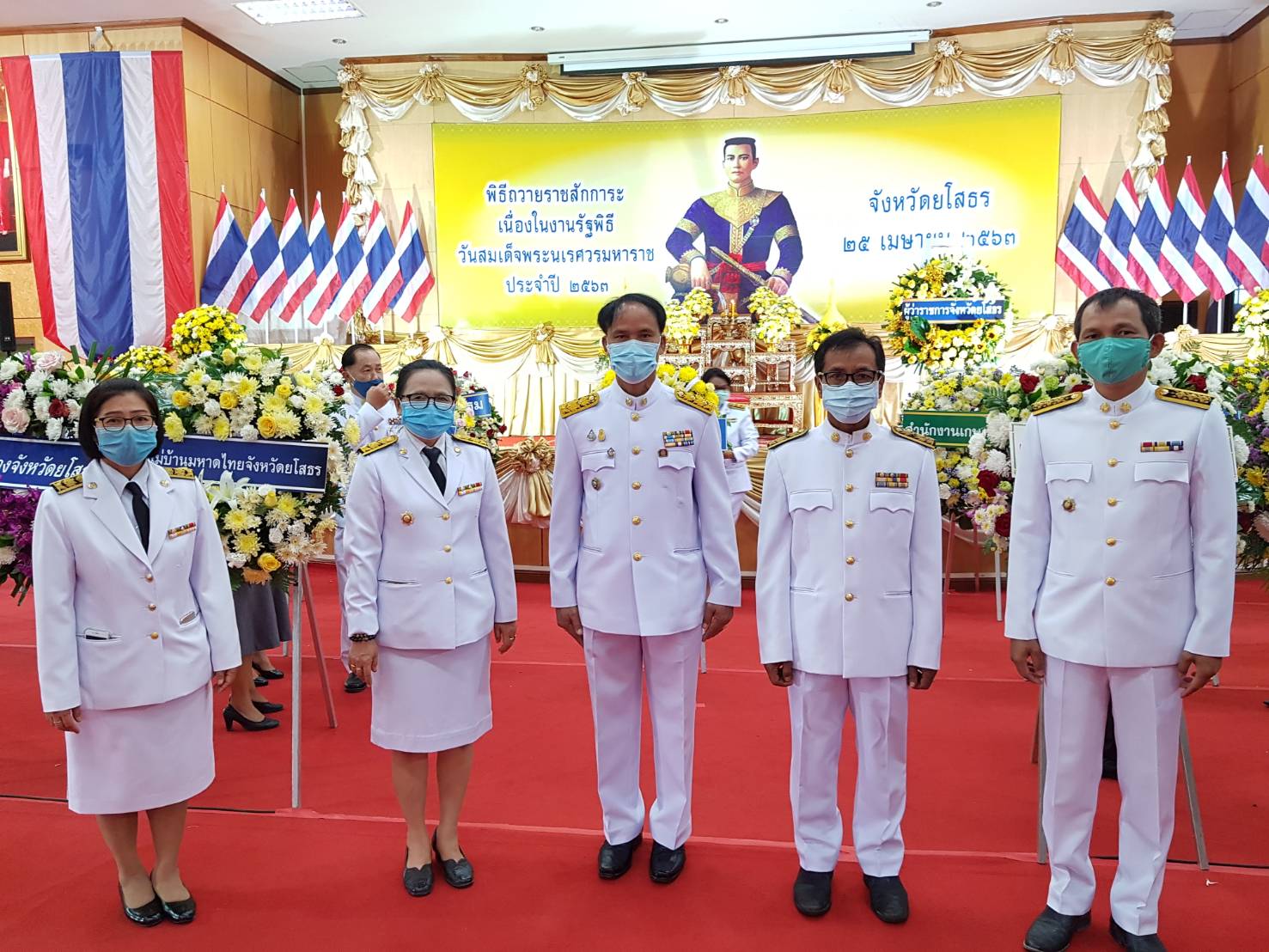 นายประเสริฐ ลือชาธนานนท์ ผู้ว่าราชการจังหวัดยโสธร เป็นประธานประกอบพิธีวางพวงมาลาถวายราชสักการะพระบรมสาทิสลักษ์สมเด็จพระนเรศวรมหาราช ในงานรัฐพิธีวันสมเด็จพระนเรศวรมหาราช ประจำปี 2563