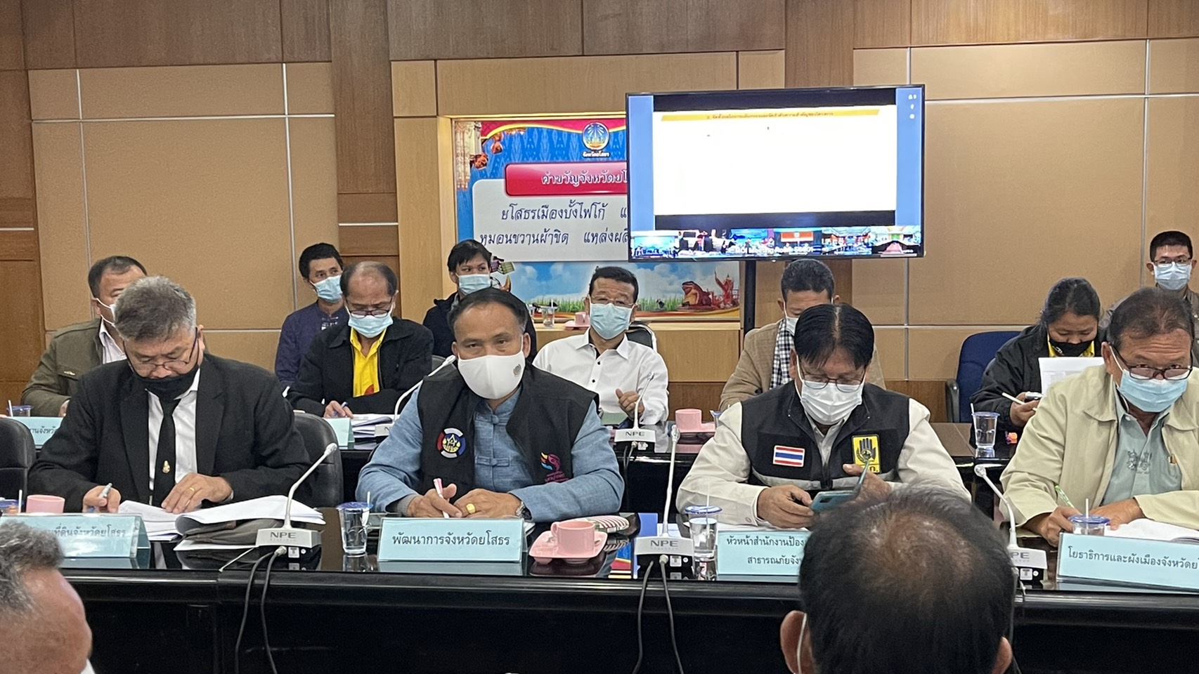 วันพฤหัสบดี ที่ 14 มกราคม 2564 เวลา 09.30 น. ณ ห้องประชุมหมอนขิด ชั้น 2 ศาลากลางจังหวัดยโสธร นายชลธี ยังตรง ผู้ว่าราชการจังหวัดยโสธร พร้อมด้วย รองผู้ว่าราชการจังหวัดยโสธร ปลัดจังหวัดยโสธร พร้อมด้วยหัวหน้า ส่วนราชการในส่วนที่เกี่ยวข้อง เข้าร่วมประชุมรับฟังข้อราชการสำคัญผ่านระบบวิดิทัศน์ทางไกล (VSC) ณ ห้องประชุมราชสีห์ อาคารศาลาว่าการกระทรวงมหาดไทย กรุงเทพมหานคร โดยมีนายสุพัฒนพงษ์ พันธ์มีเชาว์ รองนายกรัฐมนตรี เป็นประธานในที่ประชุมฯ และมีรัฐมนตรีว่าการกระทรวงมหาดไทย และรัฐมนตรีว่าการกระทรวงทรัพยากรธรรมชาติและสิ่งแวดล้อม ข้าราชการและหน่วยงาน ที่เกี่ยวข้องเข้าร่วมประชุม