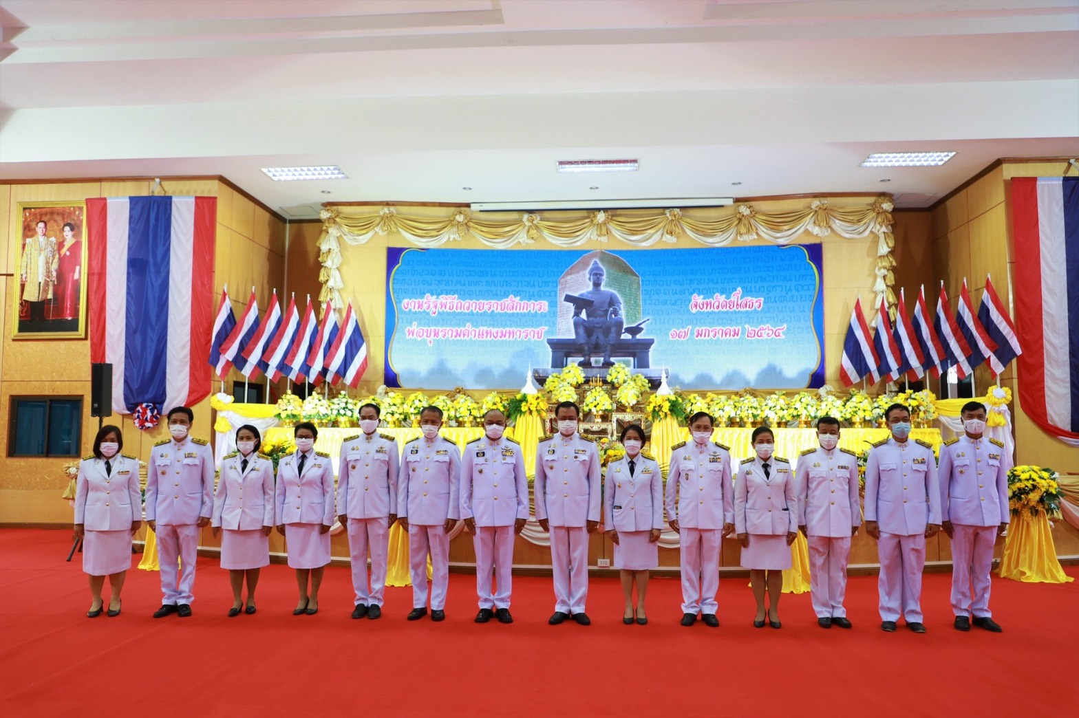 วันอาทิตย์ที่ 17 มกราคม 2564 เวลา 09.09 น. นายชลธี ยังตรง ผู้ว่าราชการจังหวัดยโสธร เป็นประธานในงานรัฐพิธีถวายราชสักการะพ่อขุนรามคำแหงมหาราช พร้อมด้วยหัวหน้าส่วนราชการ หัวหน้าหน่วยงานรัฐวิสาหกิจ เหล่ากาชาดจังหวัดยโสธร ชมรมแม่บ้านมหาดไทยจังหวัดยโสธร องค์กรภาคเอกชน พ่อค้า ประชาชน ผู้เข้าร่วมพิธีพร้อมเพียงกัน ณ หอประชุมวิธีอีสาน หน้าศาลากลางจังหวัดยโสธร ตำบลในเมือง อำเภอเมืองยโสธร จังหวัดยโสธร