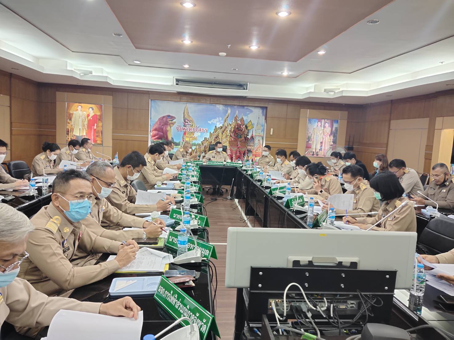 วันพุธที่ 24 กุมภาพันธ์ 2564 เวลา 08.30 น. นายชลธี ยังตรง ผู้ว่าราชการจังหวัดยโสธร เป็นประธาน การประชุมหัวหน้าส่วนราชการ หัวหน้าหน่วยงานรัฐวิสาหกิจ ในสังกัดกระทรวงมหาดไทย และนายอำเภอ ประจำเดือน กุมภาพันธ์ 2564 ณ ห้องประชุมหมอนขิด ศาลากลางจังหวัดยโสธร เพื่อมอบนโยบายการทำงานและติดตามการดำเนินงานของส่วนราชการต่างๆ ทั้งนี้ นายพนม สิงห์สาย พัฒนาการจังหวัดยโสธร มอบหมายให้ นายสุรชัย แดนพิบูลย์ เข้าร่วมประชุมฯ ดังกล่าว