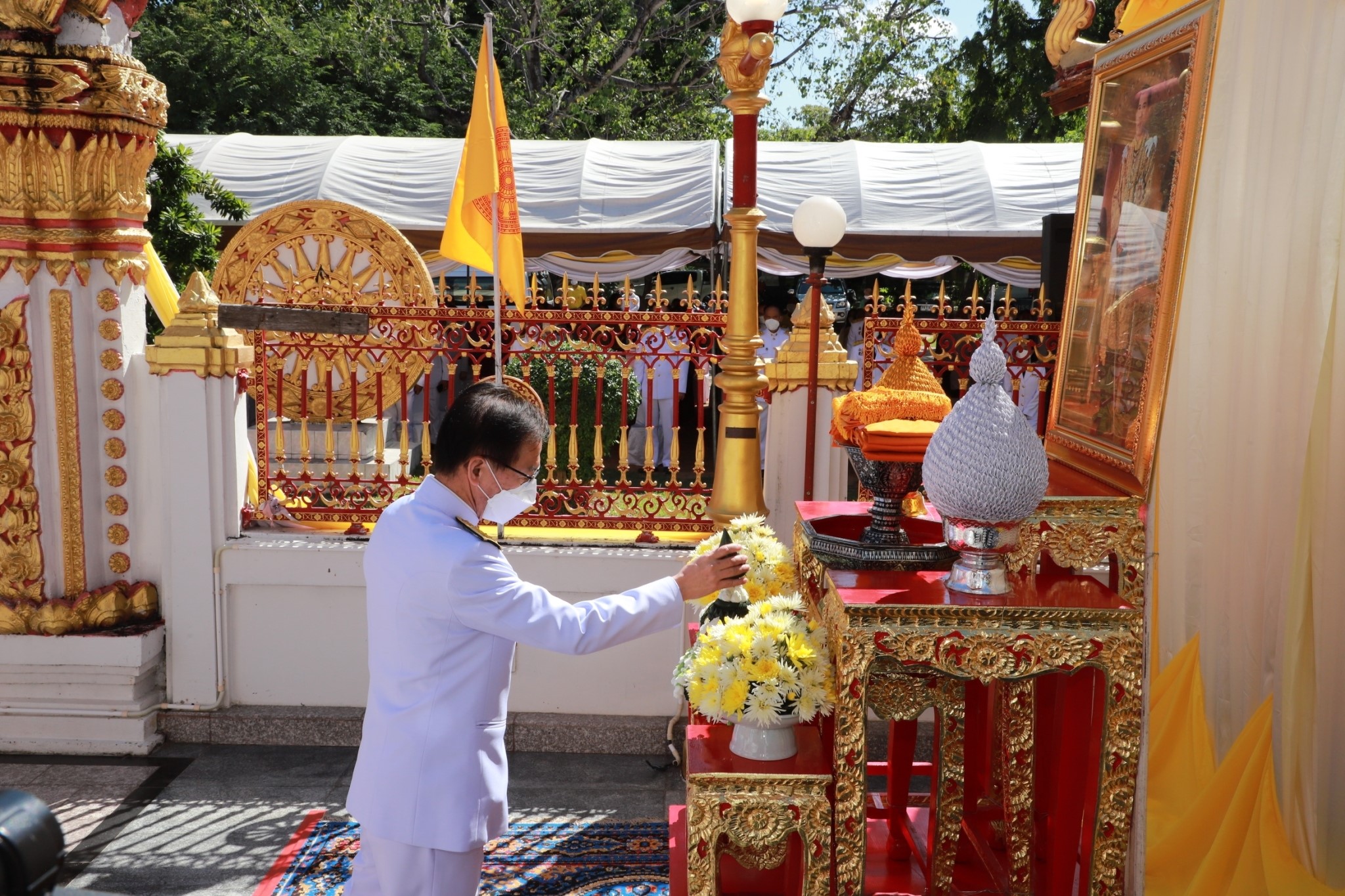 ? ในการนี้ นายพนม สิงห์สาย พัฒนาการจังหวัดยโสธร พร้อมด้วยนายบรรลือ พลับพลึง ผู้อำนวยการกลุ่มงานยุทธศาสตร์การพัฒนาชุมชน เข้าพิธีงานถวายผ้าพระกฐินพระราชทาน ประจำปีพุทธศักราช 2564 และร่วมถ่ายภาพกับ อธิบดีกรมป้องกันและบรรเทาสาธารณะภัยและคณะผู้บริหารจังหวัดยโสธร