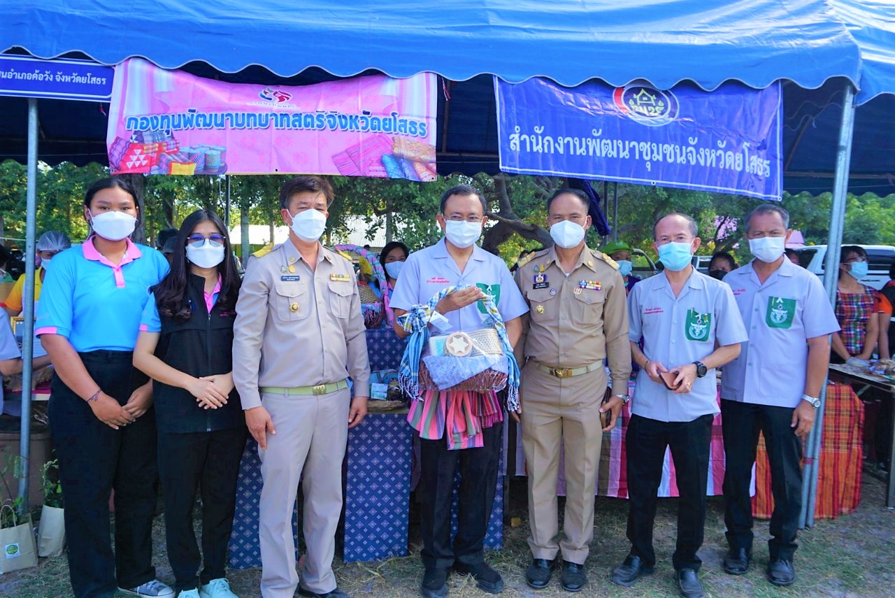 ในการนี้ นายพนม สิงห์สาย พัฒนาการจังหวัดยโสธร พร้อมด้วย พัฒนาการอำเภอค้อวัง เจ้าหน้าที่สำนักงานพัฒนาชุมชนอำเภอค้อวัง เจ้าหน้าที่กองทุนพัฒนาบทบาทสตรีจังหวัดยโสธร และนักพัฒนาชุมชน ร่วมออกหน่วยปฏิบัติงานหน่วยแพทย์ พอ.สว. ร่วมโครงการจังหวัดเคลื่อนที่ “ เพิ่มรอยยิ้ม เติมความสุข ให้คนยโสธร ” ปีงบประมาณ พ.ศ. 2565 สำนักงานพัฒนาชุมชนฯและกองทุนพัฒนาบทบาทสตรีฯ ได้ให้คำปรึกษาแก่ประชาชนกองทุน และจัดแสดงกระเช้าของขวัญด้านผลิตภัณฑ์ OTOP จังหวัดยโสธร เพื่อเป็นการประชาสัมพันธ์เชิญชวนประชาชน หน่วยงานราชการ ที่สนใจได้นำของขวัญแทนใจพร้อมยังช่วยเศรษฐกิจฐานรากได้อย่างยังยืนต่อไป ครั้งนี้ได้ปฏิบัติมาตรการในการป้องกันและควบคุม โรคโควิด-19 (COVID-19)