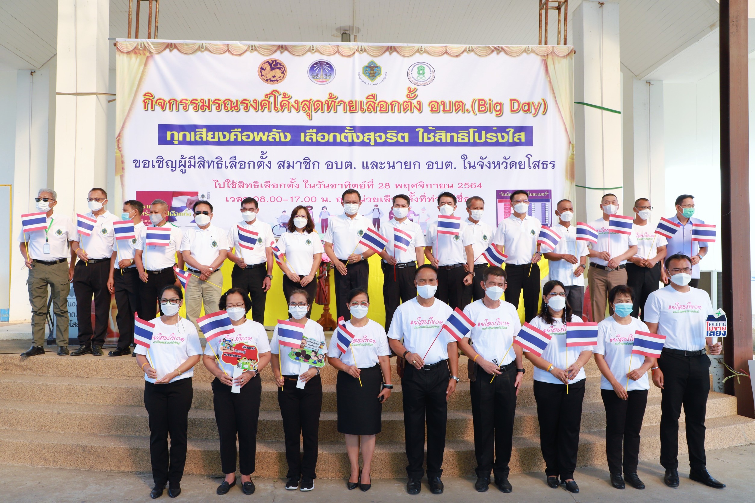 วันที่ 23 พฤศจิกายน 2564 เวลา 09.00 น นายชลธี ยังตรง ผู้ว่าราชการจังหวัดยโสธรประธานพิธีเปิดกิจกรรมณรงค์และเผยแพร่ประชาสัมพันธ์การเลือกตั้งสมาชิกสภาองค์การบริหารส่วนตำบลและนายกองค์การบริหารส่วนตำบล โดยมี นายสุวัฒน์ เข็มเพชร นายชัยวัฒน์ แสงศรี รองผู้ว่าราชการจังหวัดยโสธร พร้อมด้วย หัวหน้าส่วนราชการ หัวหน้าหน่วยงาน ผู้เข้าร่วมกิจกรรม ณ หน้าหอประชุมวิถีอีสาน ศาลากลางจังหวัดยโสธร