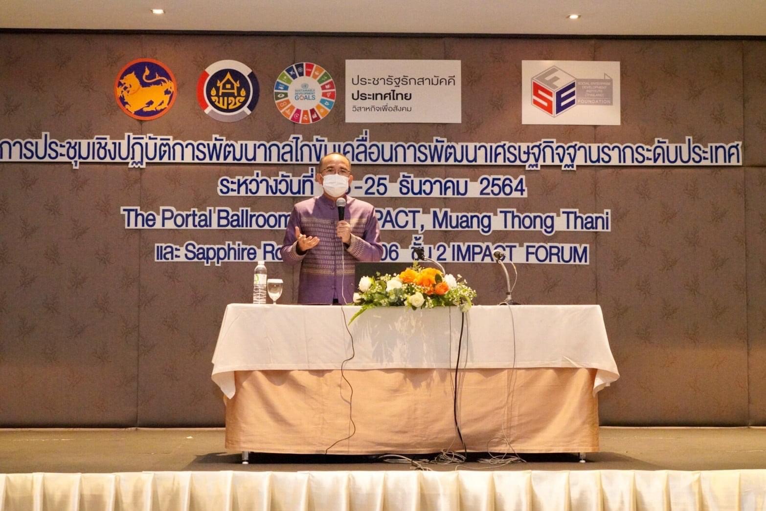?วันศุกร์ที่ 24 ธันวาคม 2564 เวลา 09.00 น. นายสมคิด จันทมฤก อธิบดีกรมการพัฒนาชุมชน เป็นประธานพิธีเปิดการประชุมเชิงปฏิบัติการและมอบนโยบายการขับเคลื่อนเศรษฐกิจฐานรากประชารัฐระดับประเทศ โดยมีวัตถุประสงค์เพื่อพัฒนากลไกขับเคลื่อนเศรษฐกิจฐานรากในพื้นที่ให้มีประสิทธิภาพเพื่อสื่อสารความเข้าใจข้อมูลและแนวทางการขับเคลื่อนการพัฒนาเศรษฐกิจฐาน รวมถึงเพื่อสร้างความสัมพันธ์/เชื่อมโยงเครือข่ายพัฒนาเศรษฐกิจฐานราก ขึ้นระหว่างวันที่ 23-25 ธันวาคม 2564 ณ ห้อง Sapphire 204-206 Hall 4 อิมแพค เมืองทองธานี อำเภอปากเกร็ด จังหวัดนนทบุรี