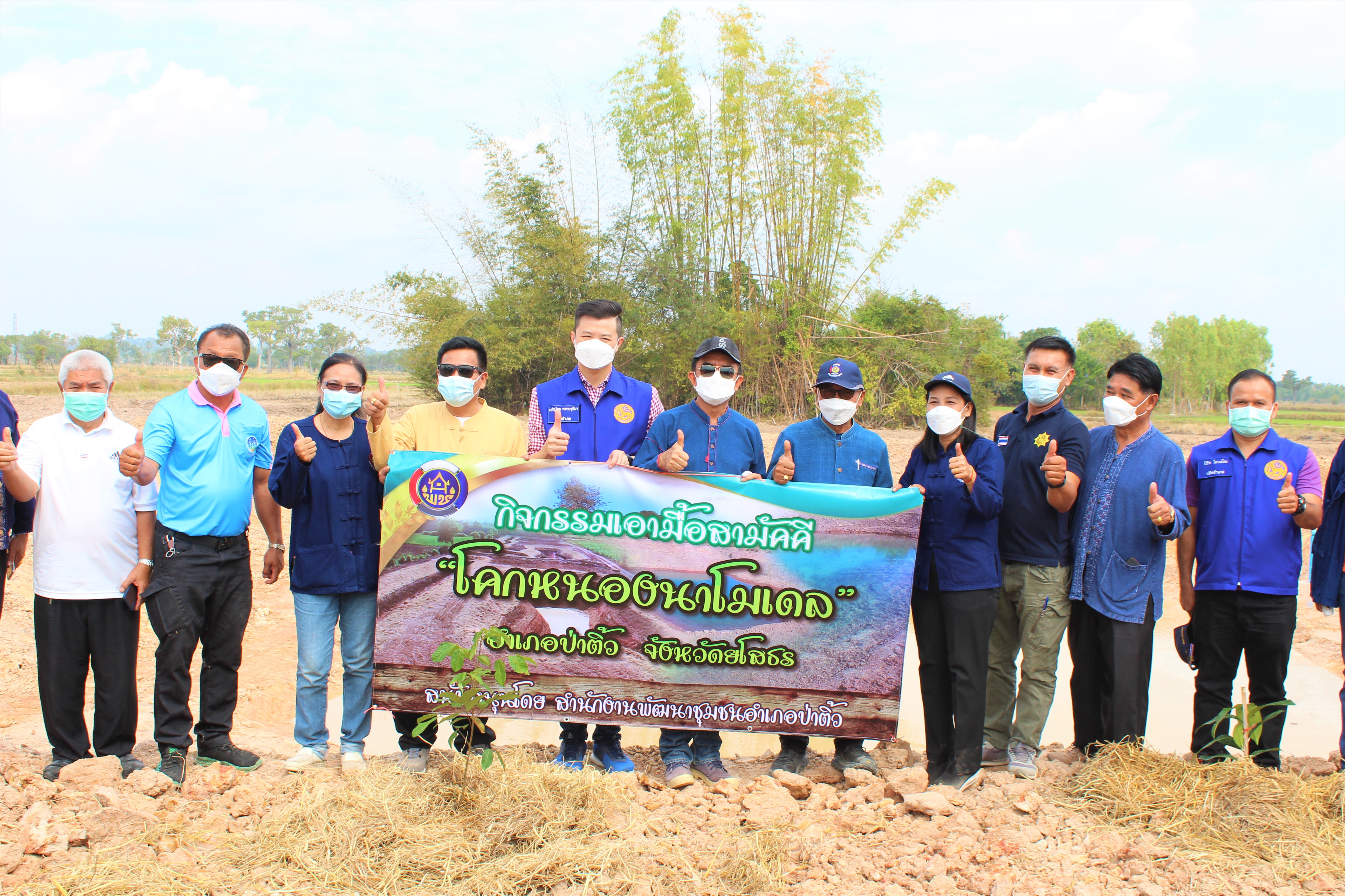 ? เวลา 10.00 น. ลงพื้นที่โครงการพัฒนาพื้นที่ต้นแบบการพัฒนาคุณภาพชีวิตตามหลักทฤษฎีใหม่ประยุกต์สู่ “โคก หนอง นา โมเดล” แปลงขนาด 1 ไร่ แปลง นางพัฒน์ทินัน พยัคมพันธ์ หมู่ 7 ตำบลกระจาย อำเภอป่าติ้ว พร้อมเปิดกิจกรรมเอามื้อสามัคคี “ โคก หนอง นา โมเดล” ประกอบด้วย ปลูกไม้ผลเพื่อสร้างความมั่นคงทางอาหาร