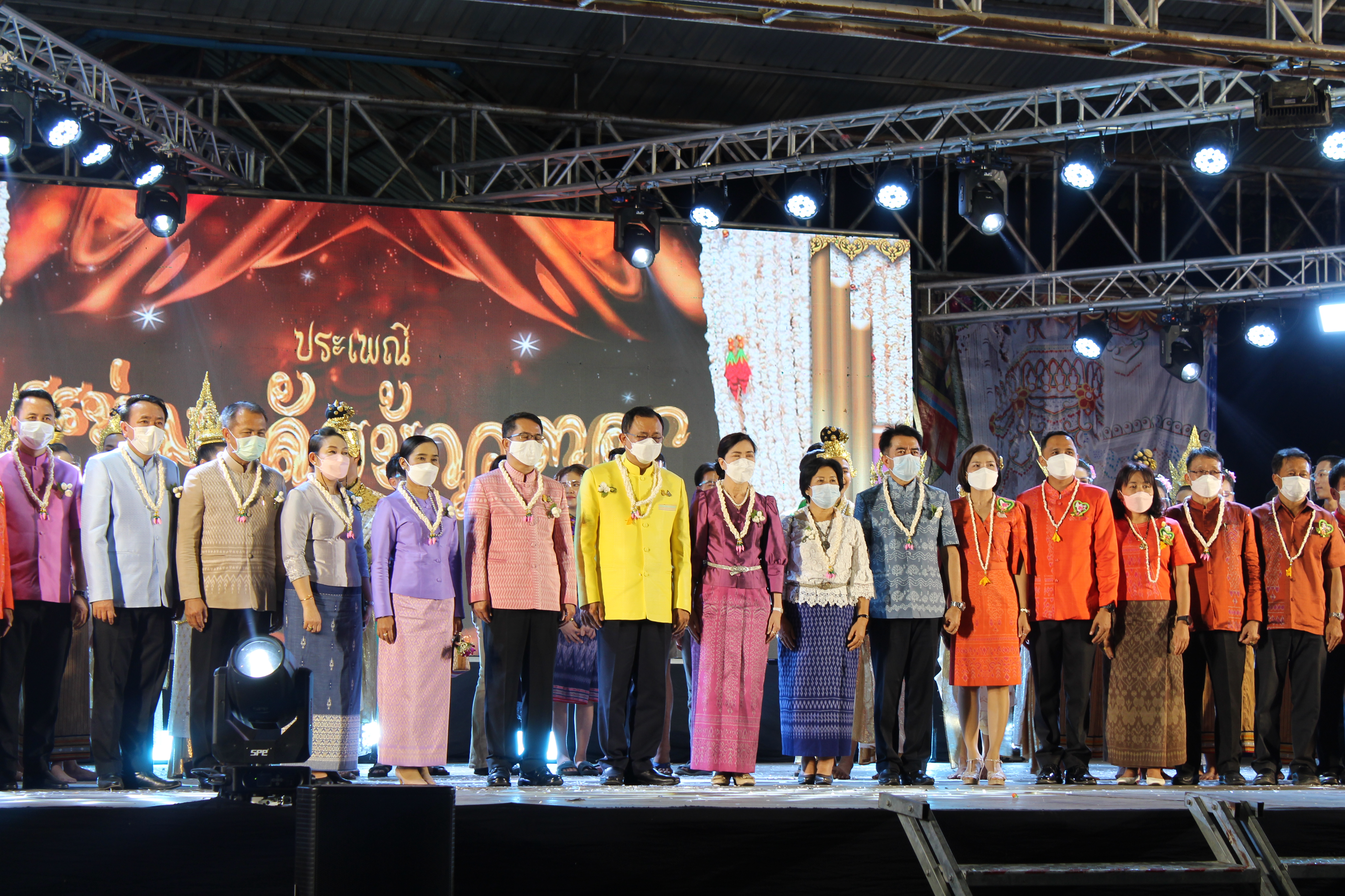 ? พร้อมนี้ ทางอำเภอมหาชนะชัย ได้จัดพิธีบวงสรวง และรำประกอบเพลงมาลัยข้าวตอก ซึ่งเป็นนางรำจากชาวบ้านและเยาวชนในชุมชน จำนวน 800 คน ร่วมกันสวมผ้าไทยลายพื้นถิ่น มีขบวนมาลัยข้าวตอกที่ยิ่งใหญ่สวยงาม ซึ่งเป็นภูมิปัญญาจากคนในชุมชน จำนวน 26 ขบวน และจำหน่ายสินค้าโอทอปทั้งของกินของฝากมากมาย ภายใต้มาตรการป้องกันโควิด-19 อย่างเคร่งครัด