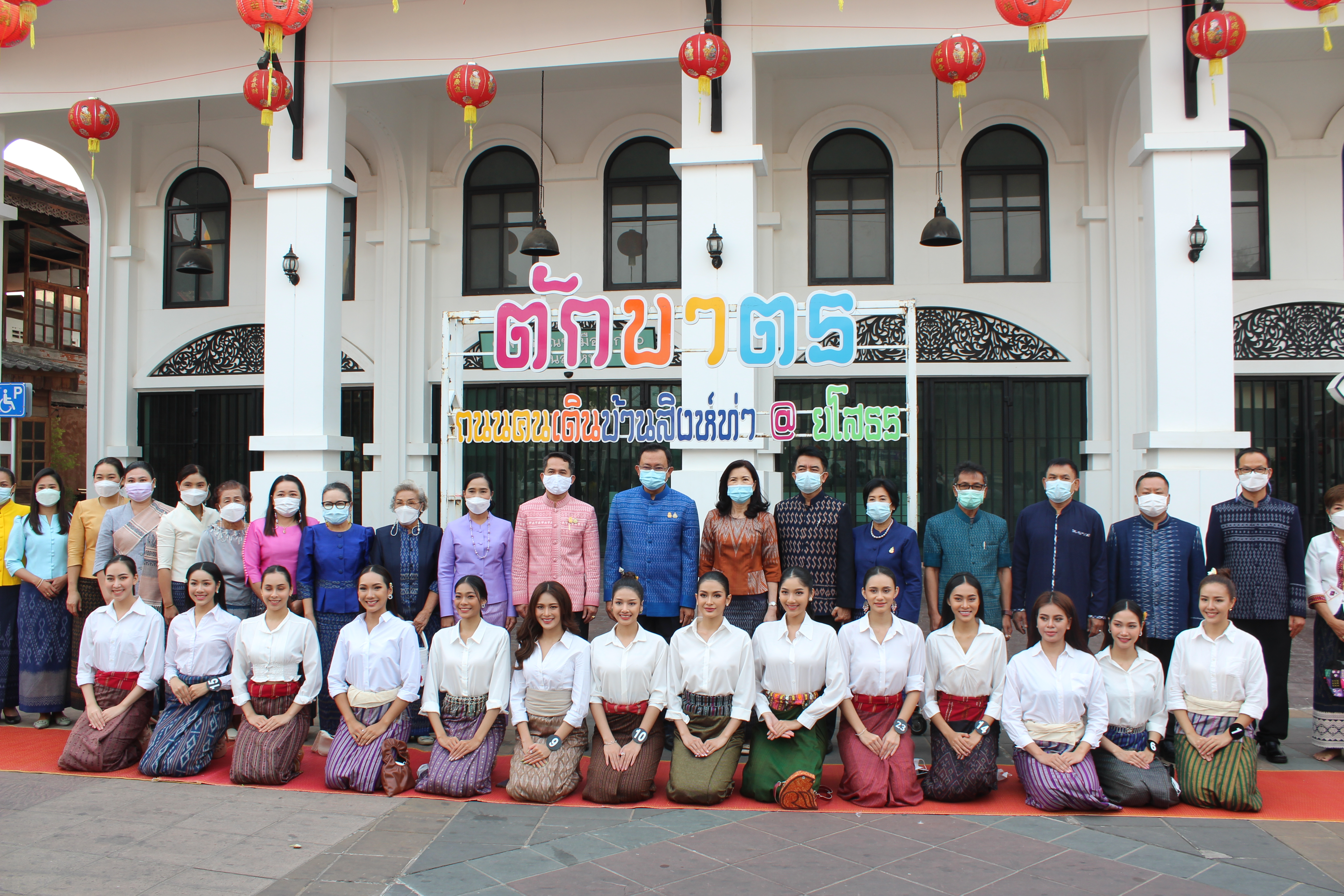 ? นายชลธี ยังตรง ผู้ว่าราชการจังหวัดยโสธร พร้อมด้วย นางพัทธานันท์ ยังตรง นายกเหล่ากาชาดจังหวัดยโสธร นายสุวัฒน์ เข็มเพชร นายชัยวัฒน์ แสงศรี รองผู้ว่าราชการจังหวัดยโสธร นางวิชชุฎา เข็มเพชร นางรพีพรรณ แสงศรี รองนายกเหล่ากาชาดจังหวัดยโสธร หัวหน้าส่วนราชการ ข้าราชการ และพุทธศาสนิกชนชาวจังหวัดยโสธร ร่วมกันทำบุญตักบาตร ซึ่งในวันนี้มีความพิเศษ เนื่องจากมีผู้ร่วมประกวดมิสแกรนด์จังหวัดยโสธรและจังหวัดมุกดาหาร ร่วมกันแต่งกายผ้าไทยพื้นบ้าน “ผ้าไทยใส่ให้สนุก”อนุรักษ์ผ้าไทยให้ทันสมัย ทำบุญตักบาตรและจำหน่ายสินค้า OTOP ในงานทำบุญตักบาตรย้อนยุควิถีถิ่นวิถีไทย ณ บริเวณถนนคนเดินเมืองเก่า (บ้านสิงห์ท่า) ภายใต้มาตรการป้องกัน COVID-19 อย่างเคร่งครัด