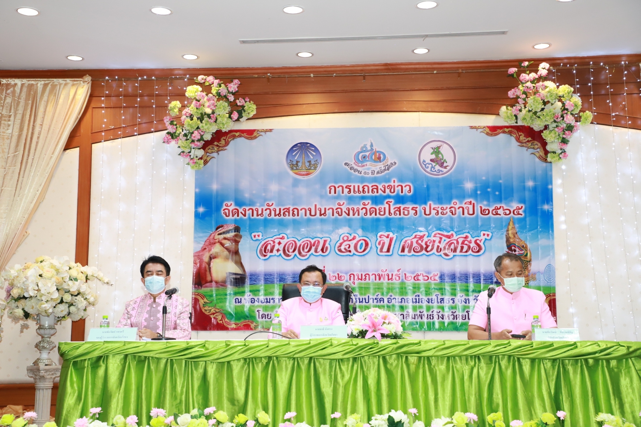 ? นายชลธี ยังตรง ผู้ว่าราชการจังหวัดยโสธร แถลงข่าว การจัดงานสถาปนาจังหวัดยโสธร ประจำปี 2565 “สะออน 50 ปี ศรียโสธร” โดยมี นายชัยวัฒน์ แสงศรี รองผู้ว่าราชการจังหวัดยโสธร นายชัยวัฒน์ ชัยเวชพิสิฐ ปลัดจังหวัดยโสธร พร้อมด้วย วัฒนธรรมจังหวัดยโสธร ผู้กำกับการสถานีตำรวจภูธรเมืองยโสธร ประธานหอการค้าจังหวัด นายกเทศมนตรีเมืองยโสธร รองนายแพทย์สาธารณสุขจังหวัดยโสธร รักษาราชการแทนพัฒนาการจังหวัดยโสธร ผู้แทนท้องถิ่นจังหวัดยโสธร ผู้แทนนายกองค์การบริการส่วนจังหวัดยโสธร รองนายกสมาคมชาวยโสธร และประชาสัมพันธ์จังหวัดยโสธร ร่วมกันแถลงข่าว และมีหัวหน้าส่วนราชการ นายอำเภอเมืองยโสธร ผู้ประกอบการโอทอป เครือข่ายธุรกิจบิสคลับ YEC จังหวัดยโสธร และ สื่อมวลชน เข้าร่วมการแถลงข่าวด้วย ณ ห้องอมราวดี 1 โรงแรมเดอะกรีนปาร์ค แกรนด์ อ.เมืองยโสธร จ.ยโสธร