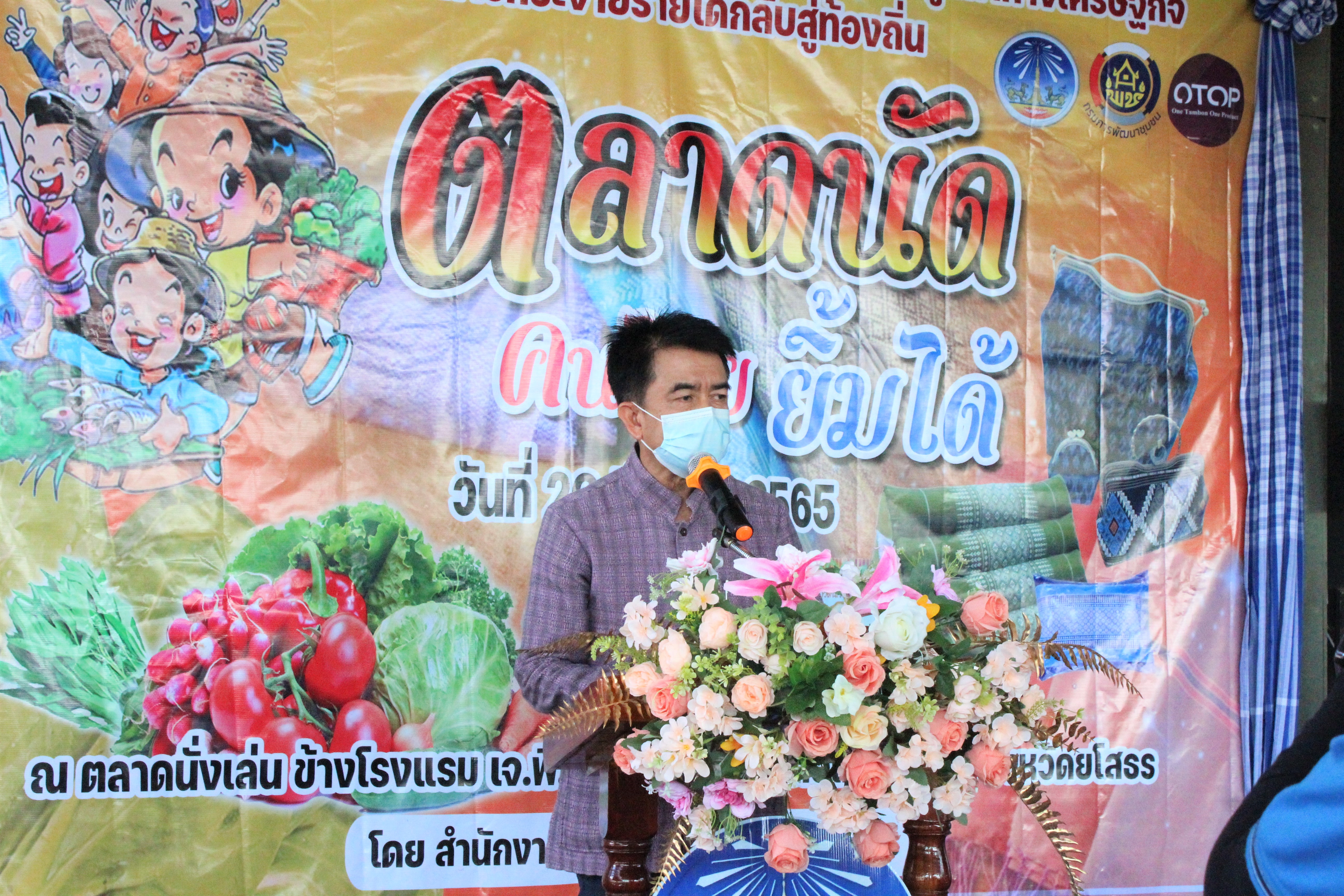 ? นายชลธี ยังตรง ผู้ว่าราชการจังหวัดยโสธร มอบหมายให้ นายชัยวัฒน์ แสงศรี รองผู้ว่าราชการจังหวัดยโสธร เป็นประธานเปิดกิจกรรม “ ตลาดนัดคนไทยยิ้มได้ ” ตามโครงการส่งเสริมการพัฒนากลไกและโครงสร้างดูดซับมูลค่าทางเศรษฐกิจ และการกระจายรายได้กลับสู่ท้องถิ่น โดยมี นายสุรชัย แดนพิบูลย์ ผู้อำนวยการสารสนเทศฯ รักษาราชการแทนพัฒนาการจังหวัดยโสธร กล่าวรายงาน การดำเนินงานตลาดนัดคนไทยยิ้มได้ เป็นนโยบายการสนับสนุนของรัฐบาล ที่จะเป็นช่องทางการตลาด ในระดับท้องถิ่น ในการซื้อ ขาย แลกเปลี่ยนสินค้าชุมชน เป็นช่องทางที่มีความสำคัญและส่งผลต่อการพัฒนาของผลิตภัณฑ์ชุมชน ในพื้นที่จังหวัดยโสธร ซึ่งสมควรได้รับการสนับสนุนให้มีการดำเนินงานอย่างต่อเนื่อง รวมทั้งควรสนับสนุนให้เกิดกระบวนการพัฒนาระบบ การบริหารจัดการ การประชาสัมพันธ์ และกิจกรรมส่งเสริมการขายต่างๆ พร้อมด้วย นายอำเภอเมืองยโสธร รองนายกเทศมนตรีเมืองยโสธร หัวหน้าส่วนราชการ ผู้อำนวยการกลุ่มงานฯ พัฒนาการอำเภอ เจ้าหน้าที่สังกัดสำนักงานพัฒนาชุมชนจังหวัดยโสธร ประชารัฐรักสามัคคียโสธร ผู้นำกลุ่มผู้ผลิต ผู้ประกอบการ OTOP ตัวแทนครอบครัวโคก หนอง นา และประชาชน ร่วมเปิดกิจกรรม ณ บริเวณตลาดนั่งเล่น โรงแรมเจ.พี.เอ็มเมอรัลด์ อำเภอเมืองยโสธร จังหวัดยโสธร