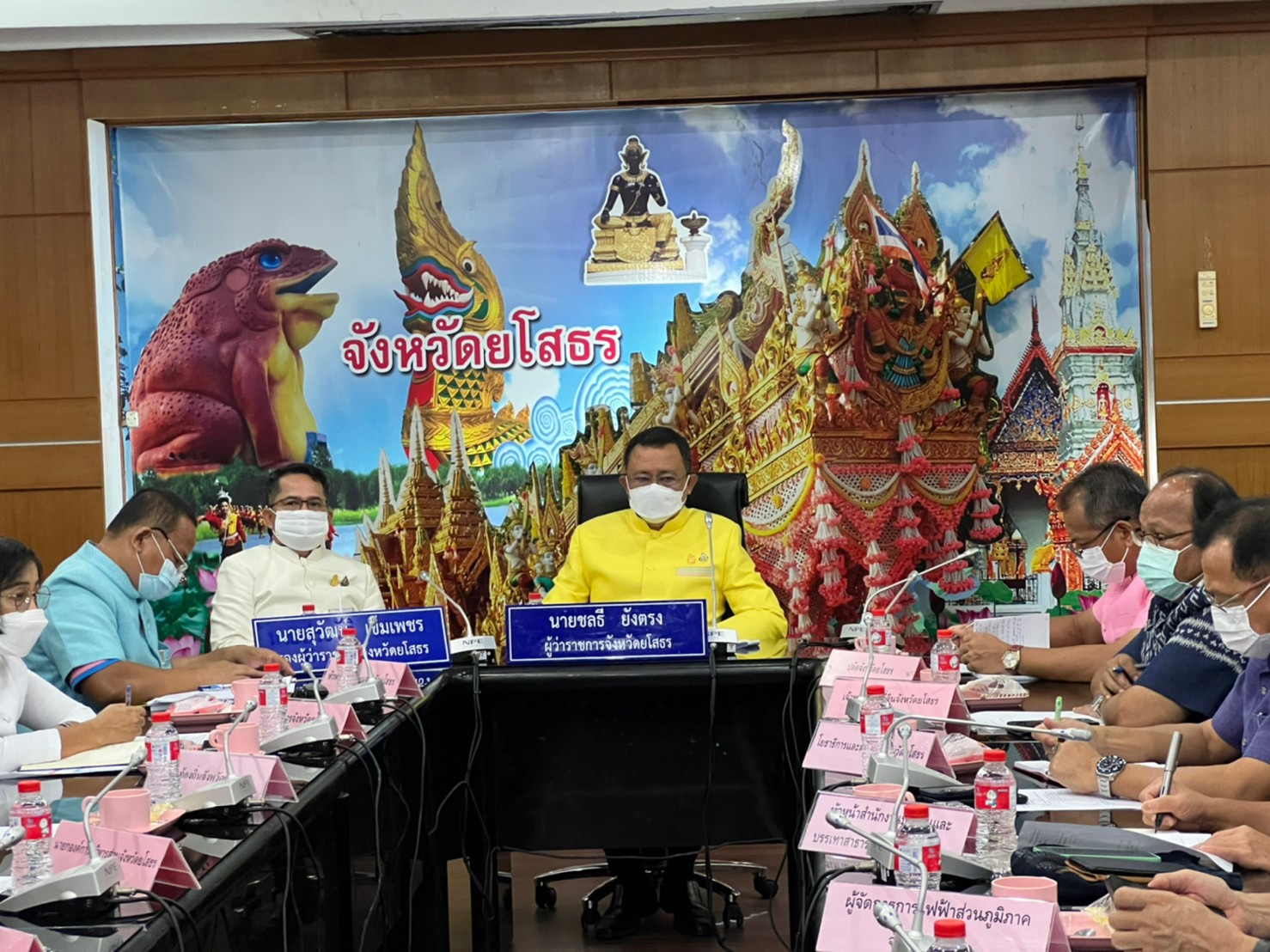 ? จังหวัดยโสธร โดย นายชลธี ยังตรง ผู้ว่าราชการจังหวัดยโสธร พร้อมด้วย นายสุวัฒน์ เข็มเพชร รองผู้ว่าราชการจังหวัดยโสธร นายชัยวัฒน์ ชัยเวชพิสิฐ ปลัดจังหวัดยโสธร และ หัวหน้าส่วนราชการ ร่วมรับฟังการมอบนโยบายและชี้แจงแนวทางการขับเคลื่อนและติดตามนโยบายของรัฐบาลและภารกิจสำคัญของกระทรวงมหาดไทยให้แก่ผู้ว่าราชการจังหวัด ณ ห้องประชุมหมอนขิด ชั้น 2 ศาลากลางจังหวัดยโสธร