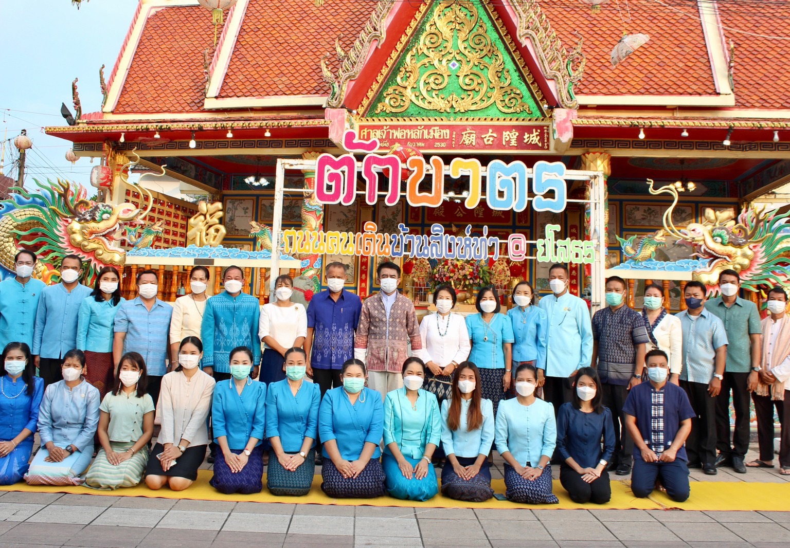นายชัยวัฒน์ แสงศรี รองผู้ว่าราชการจังหวัดยโสธร หัวหน้าส่วนราชการ และพุทธศาสนิกชน ร่วมทำบุญตักบาตรย้อนยุค และร่วมกันสวมใส่ผ้าไทยสีฟ้า (สีประจำจังหวัดยโสธร) ตามโครงการ “ผ้าไทยใส่ให้สนุก” ตามพระดำริ สมเด็จพระเจ้าลูกเธอ เจ้าฟ้าสิริวัณณวรี นารีรัตนราชกัญญา ณ ถนนคนเดินยโสธร เมืองเก่าบ้านสิงห์ท่า อำเภอเมือง จังหวัดยโสธร