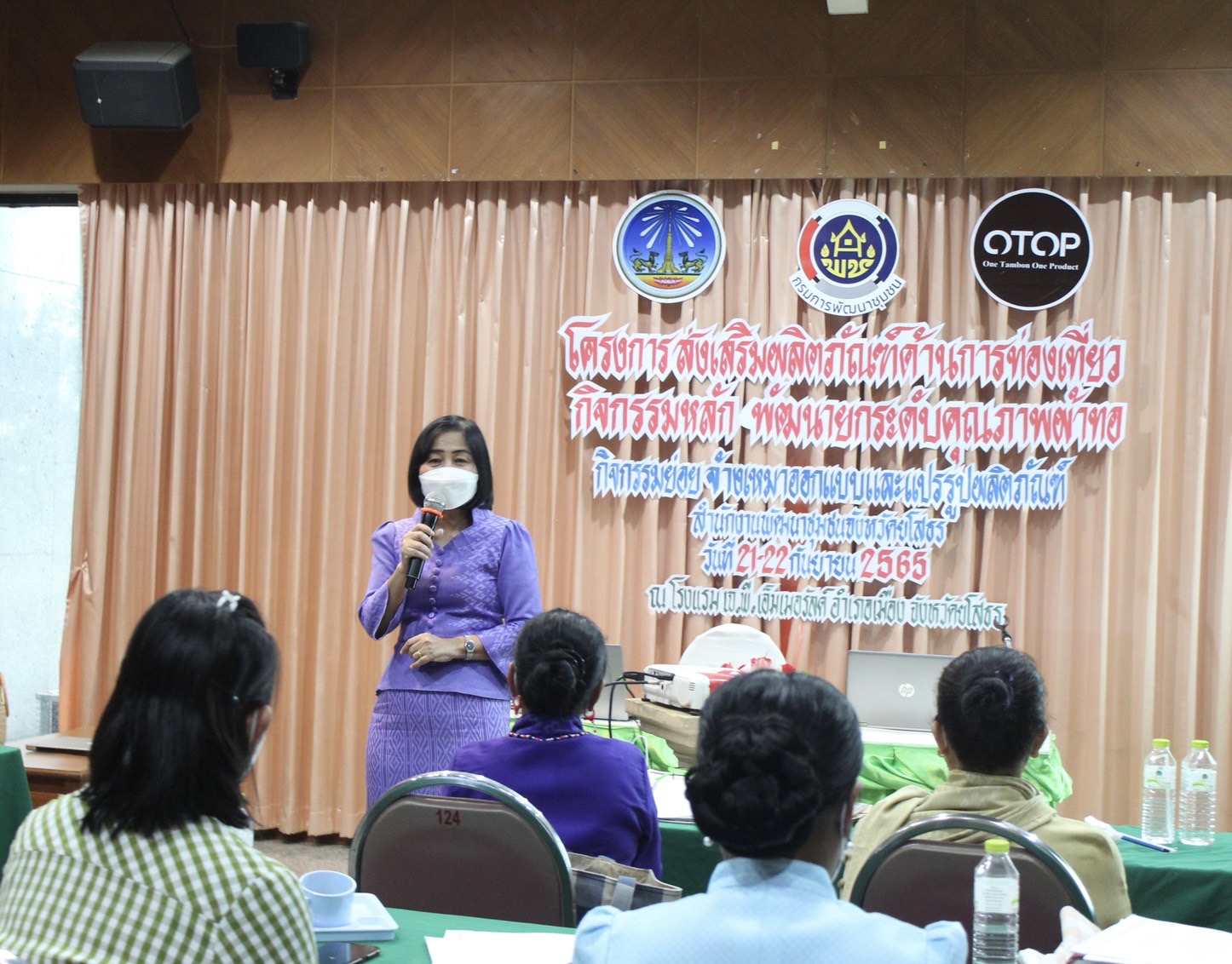 นางทรัพย์สิน โพธิ์ขาว ผู้อำนวยการกลุ่มงานส่งเสริมการพัฒนาชุมชน เจ้าหน้าที่พัฒนาชุมชนจังหวัดยโสธร ร่วมติดตามให้กำลังใจกลุ่มผู้ผลิต ผู้ประกอบการ กลุ่มทอผ้าในการดำเนินโครงการส่งเสริมผลิตภัณฑ์ด้านการท่องเที่ยว กิจกรรมหลักพัฒนายกระดับคุณภาพผ้าทอ กิจกรรมย่อย จ้างเหมาออกแบบและแปรรูปผลิตภัณฑ์ ดำเนินการระหว่างวันที่ 21-22 กันยายน 2565