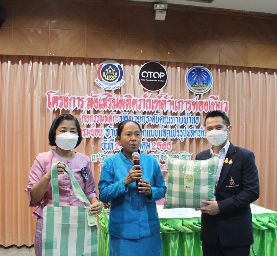 นางทรัพย์สิน โพธิ์ขาว ผู้อำนวยการกลุ่มงานส่งเสริมการพัฒนาชุมชน เจ้าหน้าที่พัฒนาชุมชนจังหวัดยโสธร ร่วมติดตามให้กำลังใจกลุ่มผู้ผลิต ผู้ประกอบการ กลุ่มทอผ้าในการดำเนินโครงการส่งเสริมผลิตภัณฑ์ด้านการท่องเที่ยว กิจกรรมหลักพัฒนายกระดับคุณภาพผ้าทอ กิจกรรมย่อย จ้างเหมาออกแบบและแปรรูปผลิตภัณฑ์