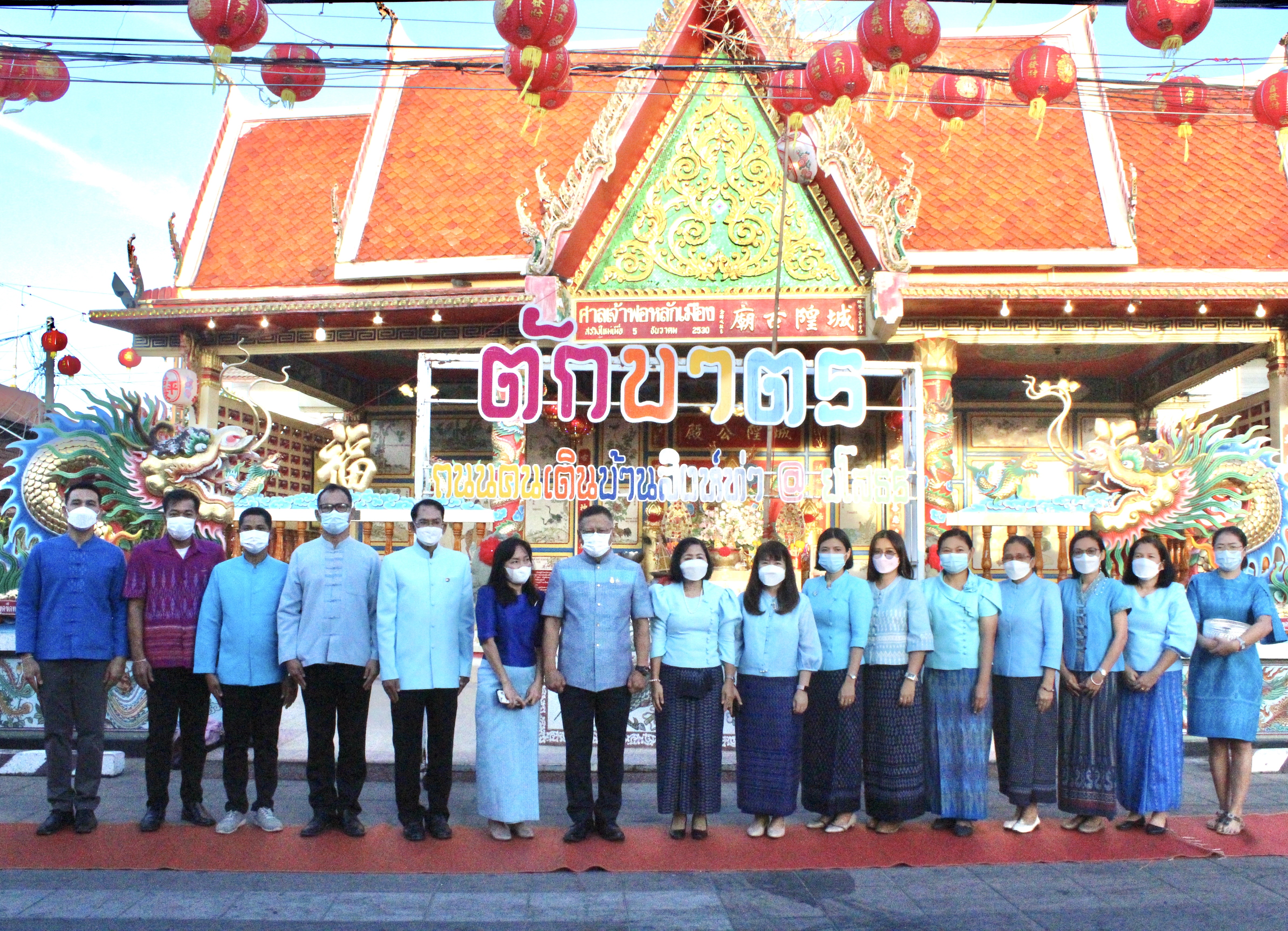 พ่อเมืองยโสธร นำหัวหน้าส่วนราชการ ข้าราชการ ประชาชนชาวจังหวัดยโสธร ร่วมทำบุญตักบาตรย้อนยุค และร่วมกันสวมใส่ผ้าไทยสีฟ้า (สีประจำจังหวัดยโสธร) ตามโครงการ “ผ้าไทยใส่ให้สนุก”