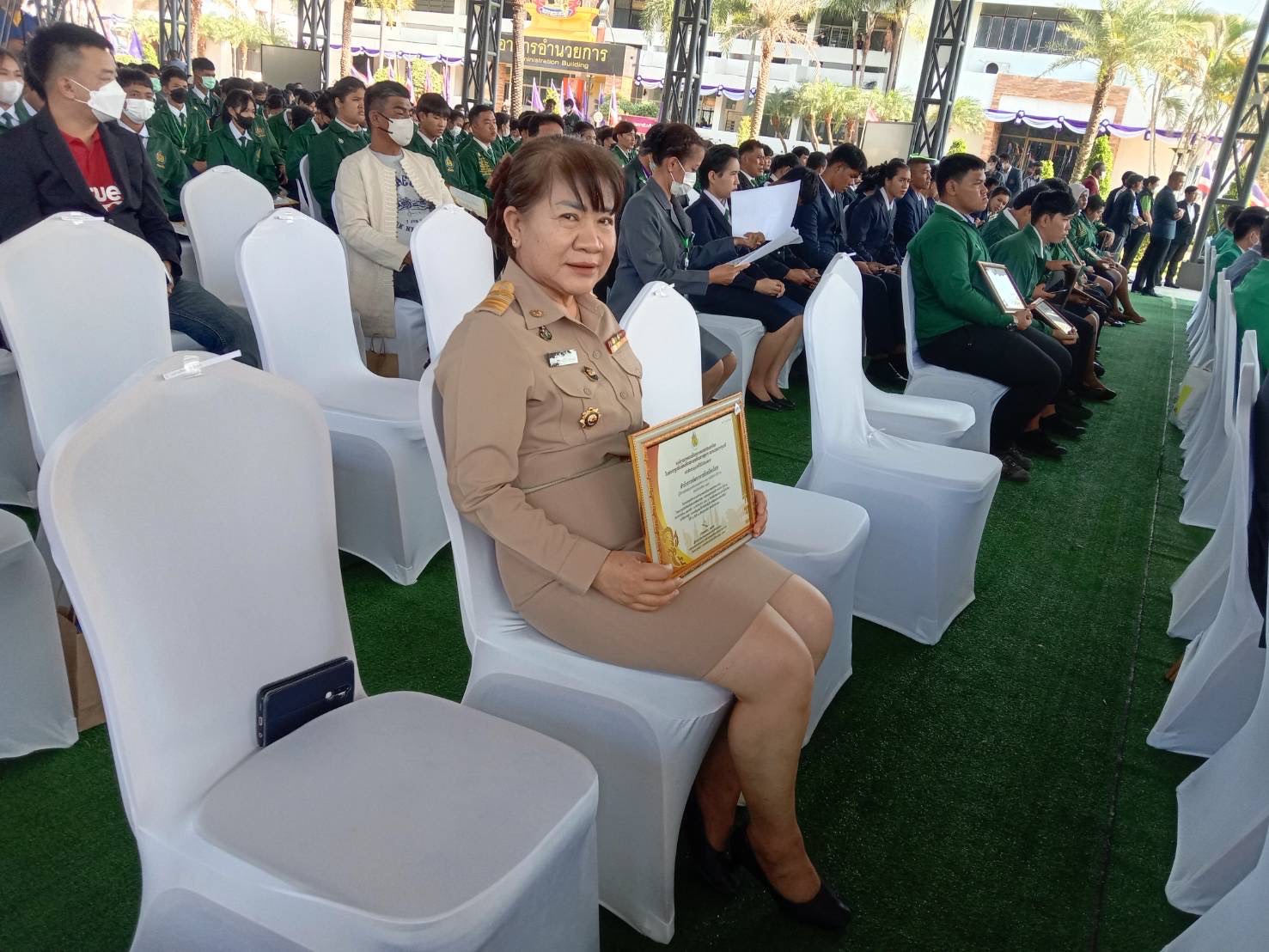นางทรัพย์สิน โพธิ์ขาว ผู้อำนวยการกลุ่มงานส่งเสริมการพัฒนาชุมชน รับมอบใบประกาศ องค์การเกษตรกรในอนาคตแห่งประเทศไทยในพระราชูปถัมภ์ สมเด็จพระเทพรัตนราชสุดาฯ สยามบรมราชกุมารีจำหน่ายสินค้า ในงานมหกรรมเกษตรอินทรีย์วิถียโสธร อาชีวะเกษตรแฟร์ 65 และงานประชุมวิชาการ อกท.ระดับชาติ ครั้งที่ 43