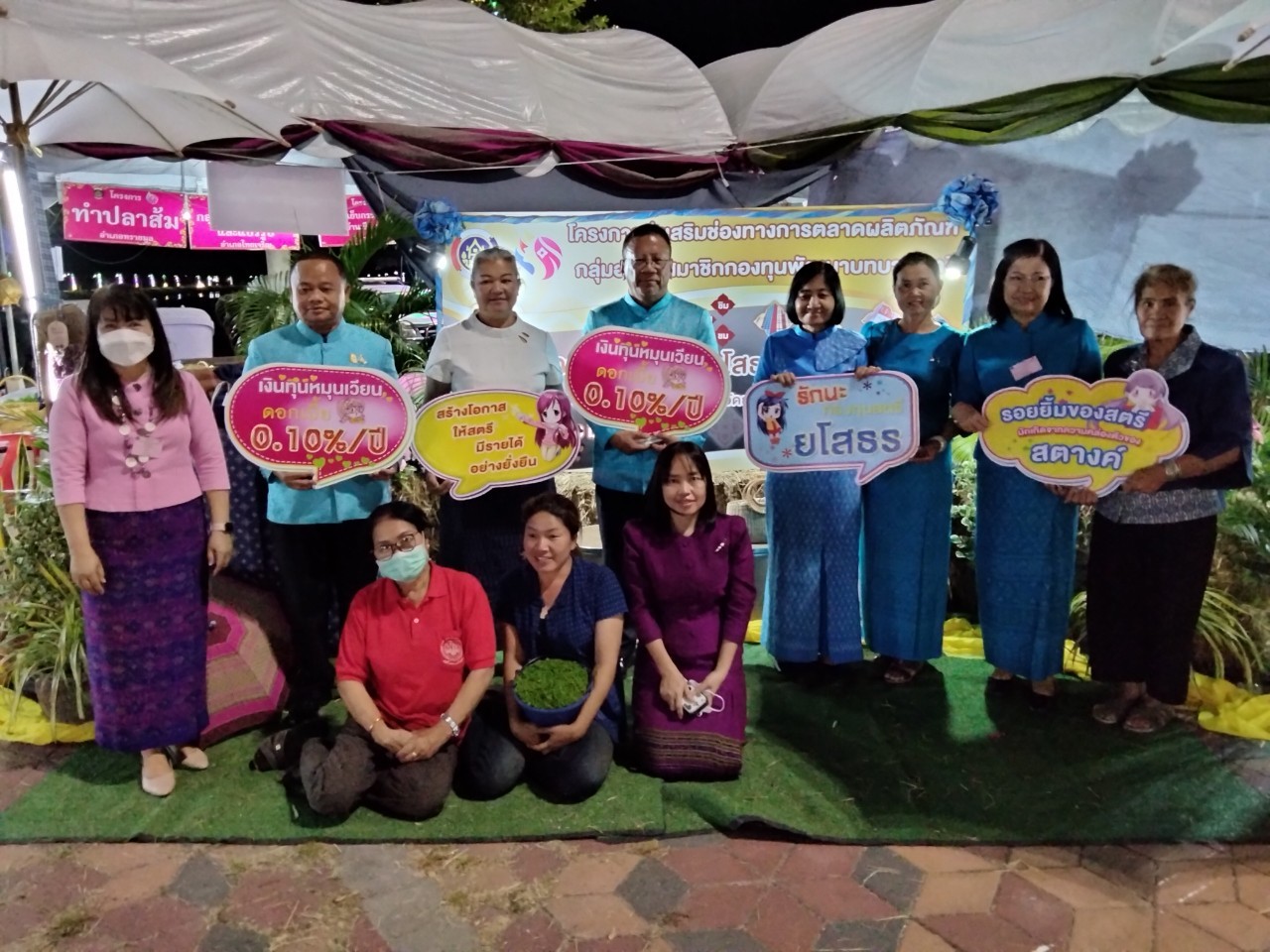 ผู้ประกอบการ OTOP ที่ร่วมจำหน่ายสินค้า OTOP และกลุ่มอาชีพจากกองทุนพัฒนาบทบาทสตรี ในงานสถาปนาจังหวัดยโสธร ปี 2566