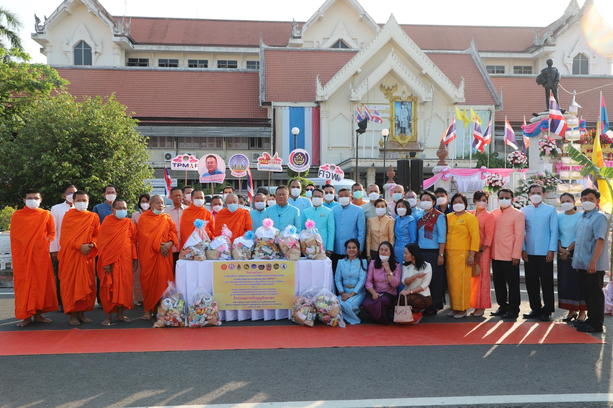 เวลา 06.30 น. นายวิรุจ วิชัยบุญ ผู้ว่าราชการจังหวัดยโสธร เป็นประธานกิจกรรมทำบุญตักบาตร นำสู่ทาน ศีลและการสงเคราะห์เพื่อนำอาหารและสิ่งของช่วยเหลือ ผู้ได้รับความเดือดร้อน (TPMAP/ThaiQM) ผู้ด้อยโอกาส/กลุ่มเปราะบาง จังหวัดยโสธร ประจำปี พ.ศ.2566 ภายใต้โครงการขจัดความยากจนพัฒนาคนทุกช่วงวัยอย่างยั่งยืนตาม หลัก ปรัชญาของเศรษฐกิจพอเพียง โดยมีหัวหน้าส่วนราชการ ข้าราชการ ประชาชนชาวจังหวัดยโสธร ร่วมกิจกรรมทำบุญตักบาตรในครั้งนี้ ในการนี้ นางสาวพุทธิมาลย์ เชียรพิมาย พัฒนาการจังหวัดยโสธร พร้อมด้วย ผู้อำนวยการกลุ่มงาน พัฒนาการอำเภอ เจ้าหน้าที่พัฒนาชุมชนจังหวัดยโสธร เข้าร่วมกิจกรรมทำบุญตักบาตรในครั้งนี้ จากนั้น ร่วมพิธีส่งมอบอาหารและสิ่งของไปช่วยเหลือคนยากจน/ผู้ได้รับความเดือดร้อน (TPMAP/ThaiQM)/ผู้ด้อยโอกาส/กลุ่มเปราะบาง จังหวัดยโสธร ระหว่าง พระเทพวงศาจารย์ เจ้าคณะจังหวัดยโสธร กับ นายวิรุจ วิชัยบุญ ผู้ว่าราชการจังหวัดยโสธร เพื่อนำไปช่วยเหลือคนยากจน/ผู้ได้รับความเดือดร้อน (TPMAP/ThaiQM)/ผู้ด้อยโอกาส/กลุ่มเปราะบาง ในจังหวัดยโสธร ภายใต้การขับเคลื่อนการขจัดความยากจนและพัฒนาคนทุกช่วงวัยอย่างยั่งยืนตามหลักปรัชญาของเศรษฐกิจพอเพียง (ศจพ.) และการขับเคลื่อนบันทึกข้อตกลงความร่วมมือ (MOU) บทบาทในการเกื้อหนุนระหว่าง