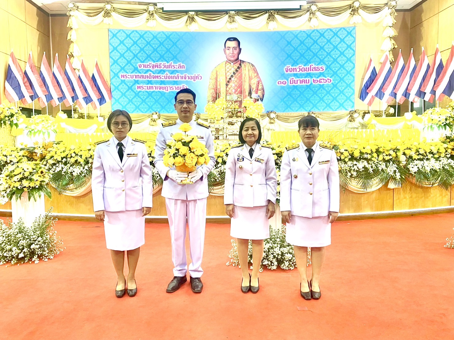 วันที่ 31 มีนาคม 2566 (เวลา 09.10 น.) นายสุวัฒน์ เข็มเพชร รองผู้ว่าราชการจังหวัดยโสธร เป็นประธานทำพิธีเนื่องใน “วันที่ระลึก พระบาทสมเด็จพระนั่งเกล้าเจ้าอยู่หัว พระมหาเจษฎาราชเจ้า” โดยมี หัวหน้าหน่วยงานราชการ ทหาร ตำรวจ องค์กรปกครองส่วนท้องถิ่น เหล่ากาชาดจังหวัด และชมรมแม่บ้านมหาดไทยร่วมพิธี ที่หอประชุมวิถีอีสาน ศาลากลางจังหวัดยโสธร อำเภอเมืองยโสธร จังหวัดยโสธร
