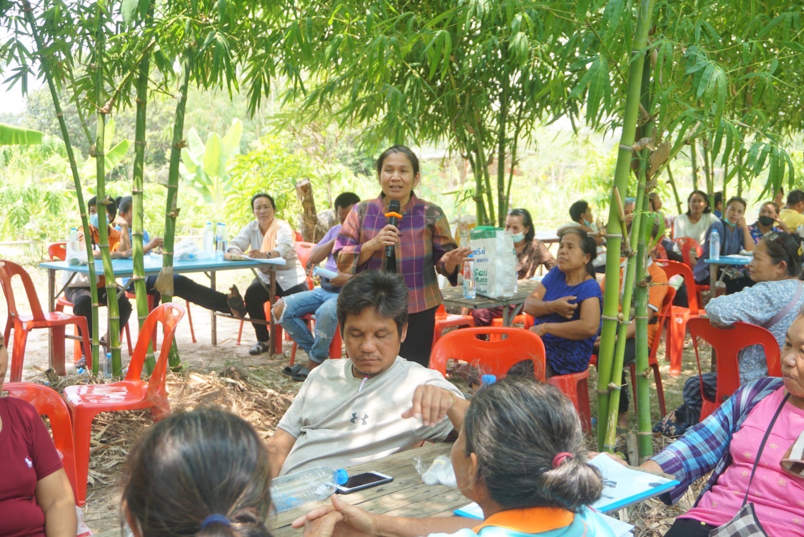พช.ยโสธร ดำเนินยกระดับการพัฒนาผลิตภัณฑ์จากภูมิปัญญาท้องถิ่นให้เป็นเอกลักษณ์และได้มาตรฐาน ณ ศูนย์เรียนรู้ชุมชนต้นแบบ โคก หนอง นา โมเดล แปลงนายสาคร โสมณวัฒน์ หมู่ที่ 8 ตำบลทุ่งนางโอก อำเภอเมือง จังหวัดยโสธร วันที่ 16 พฤษภาคม 2566