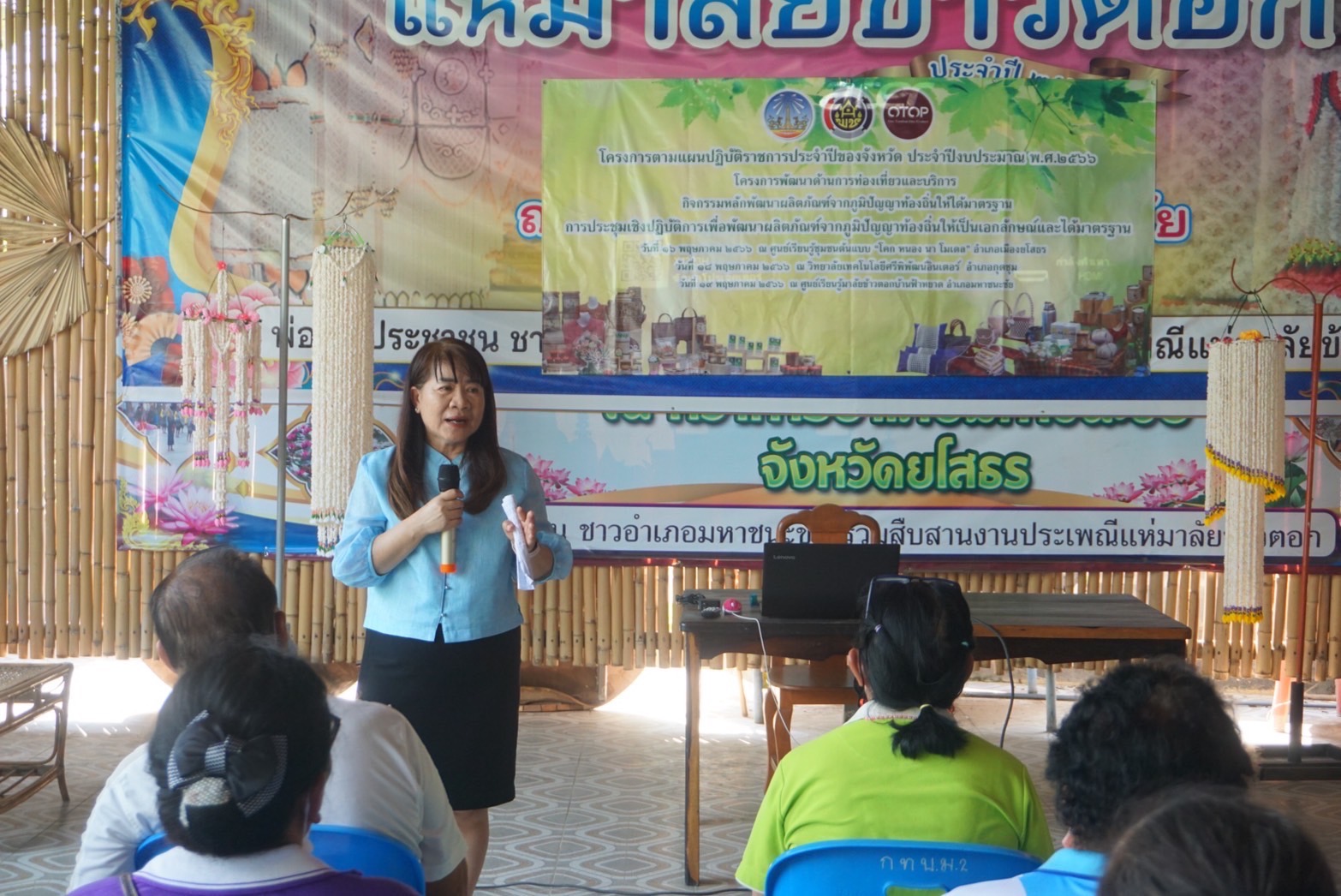 พช.ยโสธร ติดตามการดำเนินกิจกรรมยกระดับการพัฒนาผลิตภัณฑ์จากภูมิปัญญาท้องถิ่นให้เป็นเอกลักษณ์และได้มาตรฐาน รุ่นที่ 3 ณ ศูนย์เรียนรู้มาลัยข้าวตอกบ้านฟ้าหยาด หมู่ 2 ตำบลฟ้าหยาด อำเภอมหาชนะชัย จังหวัดยโสธร