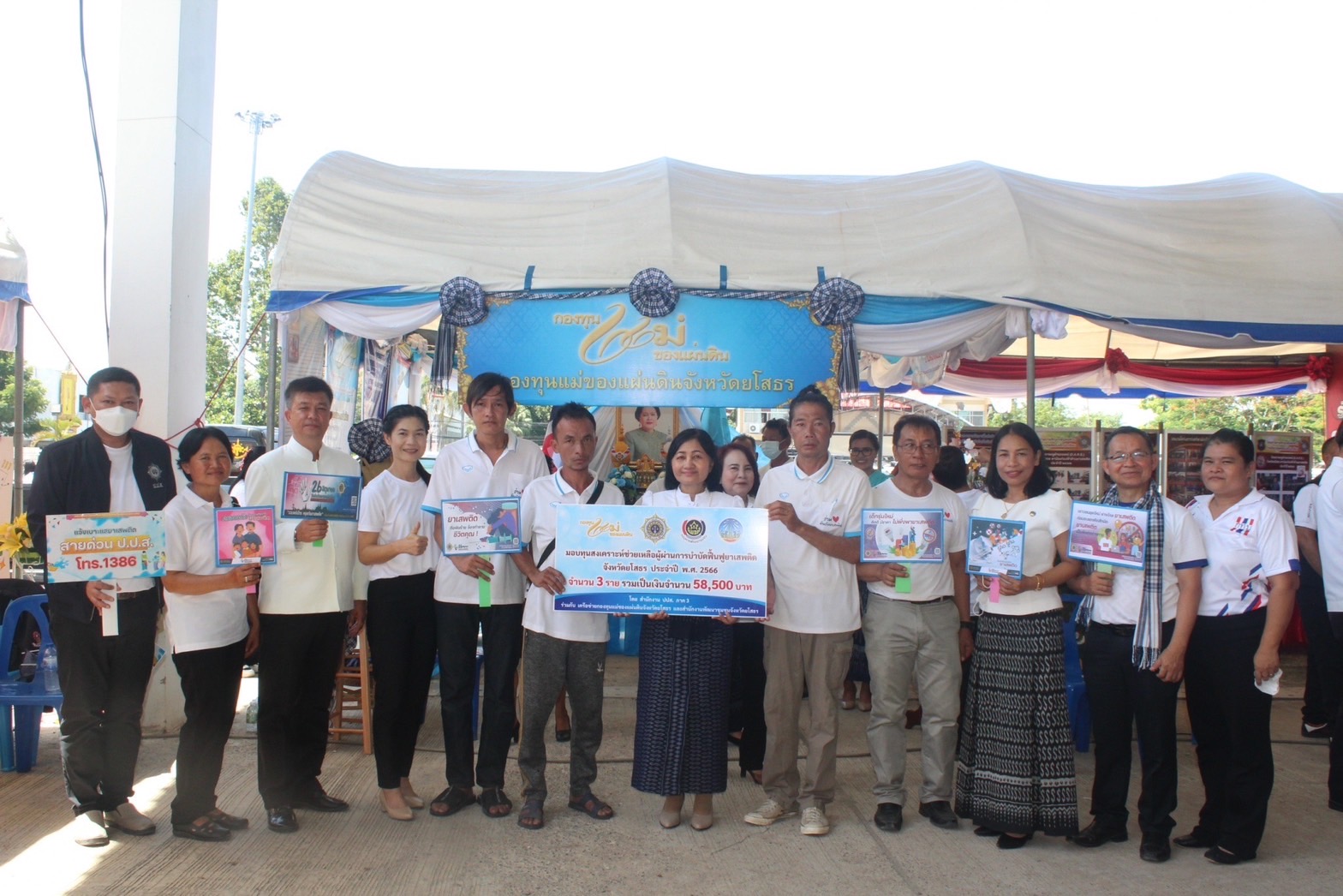 นายสุรชัย แดนพิบูลย์ ผู้อำนวยการกลุ่มงานสารสนเทศการพัฒนาชุมชน พัฒนาการอำเภอ เจ้าหน้าที่พัฒนาชุมชนจังหวัดยโสธร คณะกรรมการและสมาชิกของกองทุนแม่ของแผ่นดิน ทั้ง 9 อำเภอ ร่วมกิจกรรม โดย รองผู้ว่าราชการจังหวัดยโสธรได้มอบใบประกาศนียบัตรให้แก่ หมู่บ้านที่ผ่านการประเมินเป็นหมู่บ้านต้นกล้ากองทุนแม่ของแผ่นดิน ประจำปี 2566 ทั้ง 11 แห่ง พร้อมมอบทุนประกอบอาชีพให้แก่ผู้ผ่านการบำบัดฟื้นฟูยาเสพติด จังหวัดยโสธร ประจำปี พ.ศ.2566 จำนวน 3 ราย รวมเป็นเงิน 58,500 บาท ซึ่งได้รับเงินสนับสนุนจาก สำนักงาน ปปส.ภาค 3 เครือข่ายกองทุนแม่ของแผ่นดินจังหวัดยโสธรและสำนักงานพัฒนาชุมชน จังหวัดยโสธร