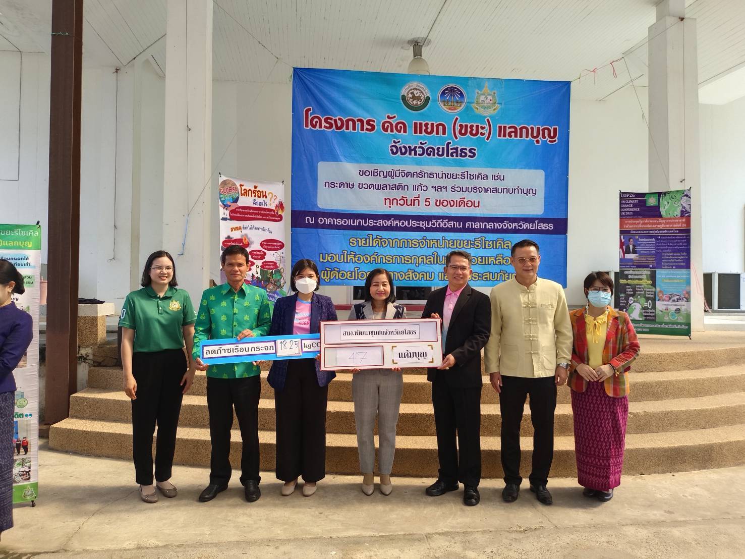 พช.ยโสธร ร่วมขับเคลื่อนจังหวัดสะอาดอย่างยั่งยืน รวมพลัง คัดแยก (ขยะ) แลกบุญ ลดปัญหาขยะ ลดก๊าซเรือนกระจก และยังได้ร่วมทำบุญสาธารณกุศลด้วย