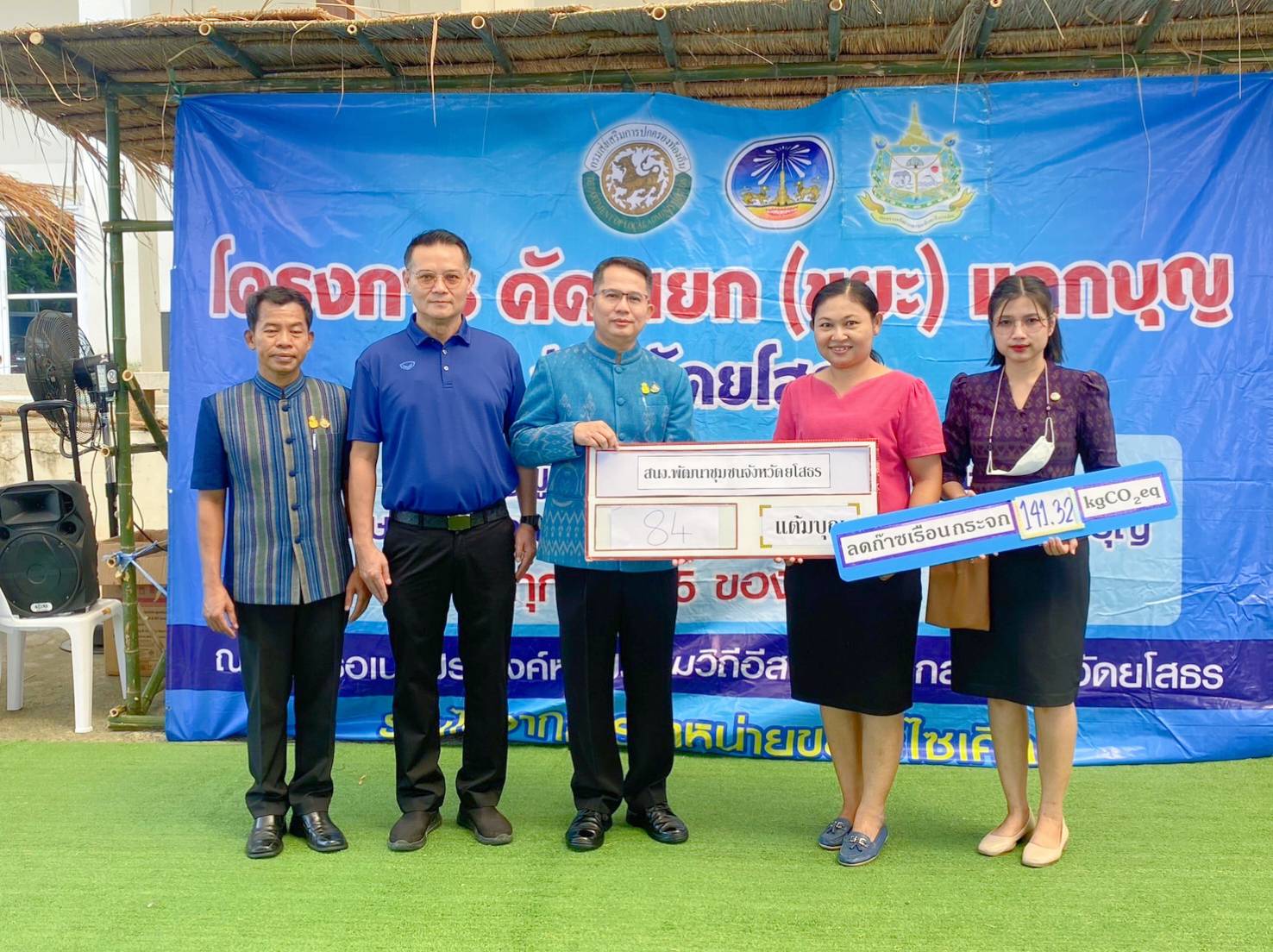 ทั้งนี้ กิจกรรม Kick off โครงการคัดแยก (ขยะ) แลกบุญ ประจำปี พ.ศ. 2566 นั้น เป็นกิจกรรมที่ให้ทุกหน่วยงานได้ร่วมสะสมแต้มบุญ ด้วยการนำขยะรีไซเคิลมาจำหน่าย เมื่อจำหน่ายได้ 1 บาท = 1 แต้มบุญ อีกทั้งเพื่อให้ทุกหน่วยงานได้ร่วมกันคัดแยกขยะ และนำขยะรีไซเคิลมาจำหน่าย เป็นการลดขยะ ลดปัญหาสิ่งแวดล้อม อีกทั้งยังเป็นการลดการปล่อยก๊าซเรือนกระจกด้วย ส่วนการร่วมบริจาคสะสมแต้มบุญนั้น เงินที่ได้จะนำไปช่วยเหลือผู้ด้อยโอกาสและใช้ในกิจกรรมสาธารณกุศล โดยในวันนี้เป็นการจัดกิจกรรม ครั้งที่ 5 และมีหน่วยงานเข้าร่วม จำนวน 27 หน่วยงาน สะสมแต้มบุญ รวมจำนวน 2,297 แต้มบุญ สามารถลดภาวะเรือนกระจกได้ 3,630 กิโลกรัมคาบอนไดออกไซด์เทียบเท่า