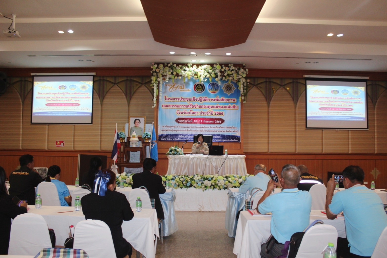 พช.ยโสธร ดำเนินโครงการประชุมเชิงปฏิบัติการเพิ่มศักยภาพคณะกรรมการเครือข่ายกองทุนแม่ของแผ่นดิน จังหวัดยโสธร ประจำปี 2566 วันที่ 18 กันยายน 2566 เวลา 10.00 น. ณ ห้องอมราวดี 2 โรงแรมเดอะกรีนปาร์คแกรนด์ยโสธร จังหวัดยโสธร นายวิรุจ วิชัยบุญ ผู้ว่าราชการจังหวัดยโสธร มอบหมาย นางสาวพุทธิมาลย์ เชียรพิมาย พัฒนาการจังหวัดยโสธร เป็นประธานในพิธีเปิดโครงการประชุมเชิงปฏิบัติการเพิ่มศักยภาพคณะกรรมการเครือข่ายกองทุนแม่ของแผ่นดิน จังหวัดยโสธร ประจำปี 2566 ทั้งนี้จังหวัดยโสธรได้แต่งตั้งคณะกรรมการเครือข่ายกองทุนแม่ของแผ่นดินระดับจังหวัด เพื่อประสานงานการดำเนินงานร่วมกับสำนักงานพัฒนาชุมชนจังหวัด/อำเภอและหน่วยงานที่เกี่ยวข้องในการกำหนดกรอบแนวทางการเสริมสร้างความเข้มแข็งของกองทุนแม่ของแผ่นดินในด้านการป้องกันและแก้ไขปัญหายาเสพติด เพื่อสนองพระราชปณิธานของสมเด็จพระนางเจ้าสิริกิติ์ พระบรมราชินีนาถ พระบรมราชชนนีพันปีหลวง ในการแก้ไขปัญหายาเสพติดให้เกิดความยั่งยืน กลุ่มเป้าหมายประกอบด้วย 1.คณะกรรมการเครือข่ายกองทุนแม่ของแผ่นดินจังหวัดยโสธร 2.ประธานหรือผู้แทนคณะกรรมการกองทุนแม่ของแผ่นดิน ปี 2566 3.เจ้าหน้าที่พัฒนาชุมชนผู้รับผิดชอบงานกองทุนแม่ของแผ่นดิน รวม 66 คน ทั้งนี้เพื่อให้เกิดการแลกเปลี่ยนเรียนรู้และศึกษาดูงานเกี่ยวกับการดำเนินงาน กองทุนแม่ของแผ่นดินเพื่อมาปรับใช้ในพื้นที่ กำหนดระยะเวลา 2 วัน ระหว่างวันที่ 18-19 กันยายน 2566