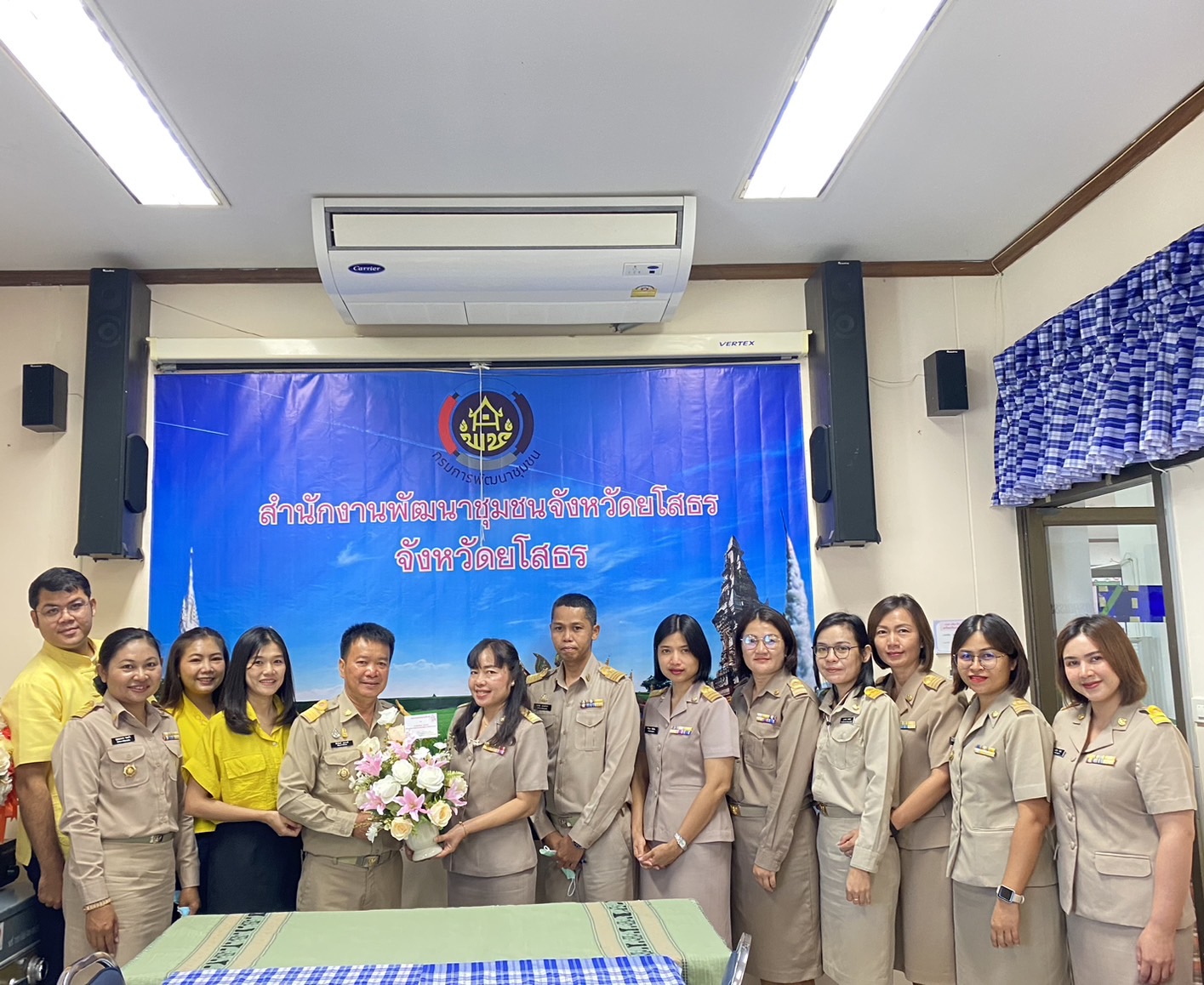 นายสุรชัย แดนพิบูลย์ ผู้อำนวยการกลุ่มงานสารสนเทศการพัฒนาชุมชน พร้อมด้วย ผู้อำนวยการกลุ่มงานประสานและสนับสนุนการบริหารงานพัฒนาชุมชน เจ้าหน้าที่พัฒนาชุมชนสำนักงานพัฒนาชุมชนจังหวัดยโสธร มอบดอกไม้แสดงความยินดีและต้อนรับข้าราชการที่ย้ายมาดำรงตำแหน่ง ใหม่ ณ สำนักงานพัฒนาชุมชจังหวัดยโสธร ตามคำสั่งกรมการพัฒนาชุมชน ที่ 2902/2566 และที่ 2907/2566 ลงวันที่ 3 พฤศจิกายน 2566 จำนวน 3 ราย ได้แก่