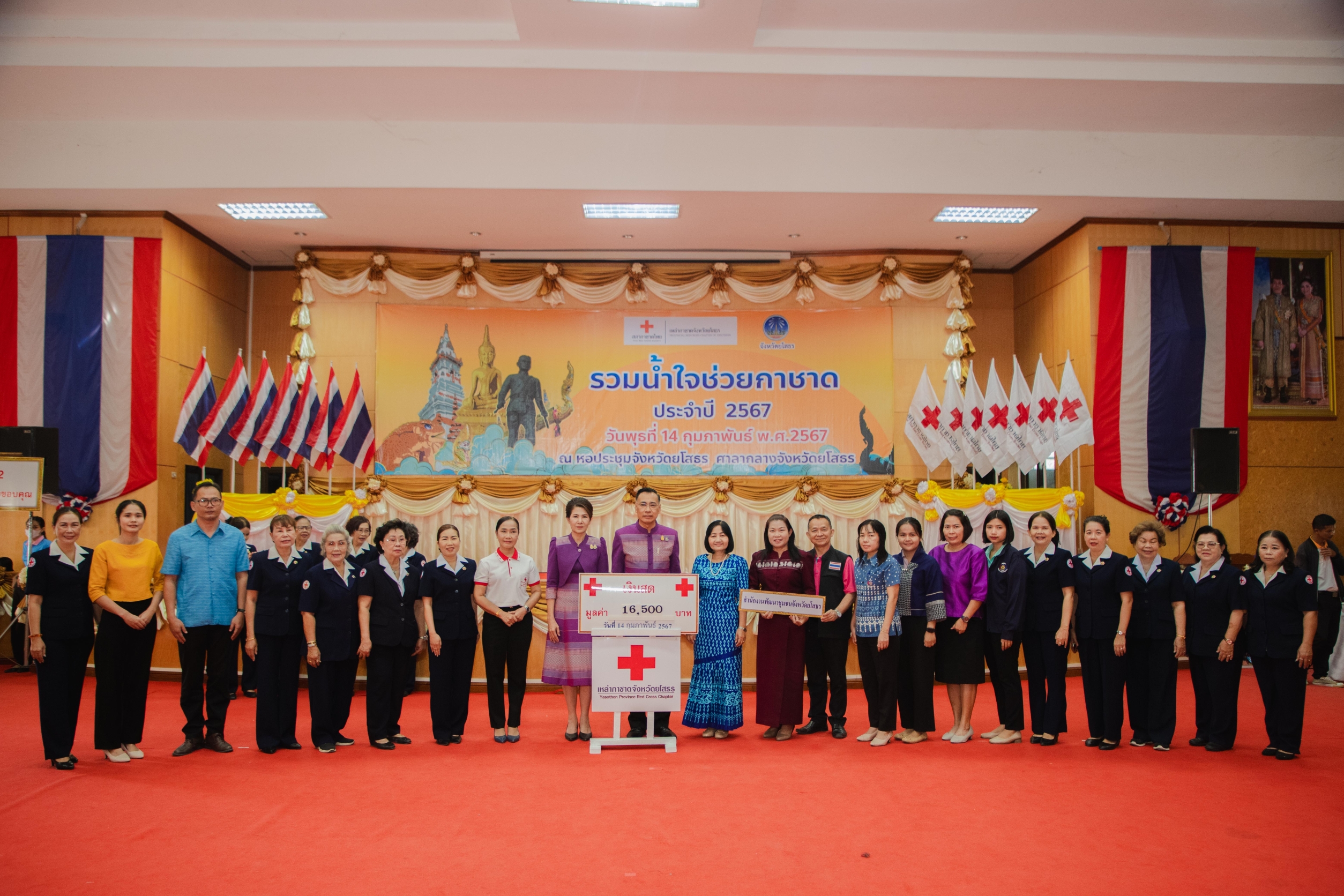 นายชรินทร์ ทองสุข ผู้ว่าราชการจังหวัดยโสธร พร้อมด้วย นางสินีนาฏ ทองสุข นายกเหล่ากาชาดและประธานแม่บ้านมหาดไทยจังหวัดยโสธร เป็นประธานงานวันรวมน้ำใจช่วยกาชาด ประจำปี 2567 โดยมี นายสุวัฒน์ เข็มเพชร รองผู้ว่าราชการจังหวัดยโสธร นายบรรลือ สัมฤทธิ์จินตนา ปลัดจังหวัดยโสธร รอง รองนายกเหล่ากาชาดจังหวัดยโสธร หัวหน้าส่วนราชการ นายอำเภอทั้ง 9 อำเภอ คณะกรรมการและสมาชิกเหล่ากาชาดจังหวัดยโสธร ภาคเอกชน ห้างร้าน สถานศึกษา และประชาชนผู้มีจิตศรัทธา ร่วมงาน ณ หอประชุมจังหวัดยโสธร ศาลากลางจังหวัดยโสธร