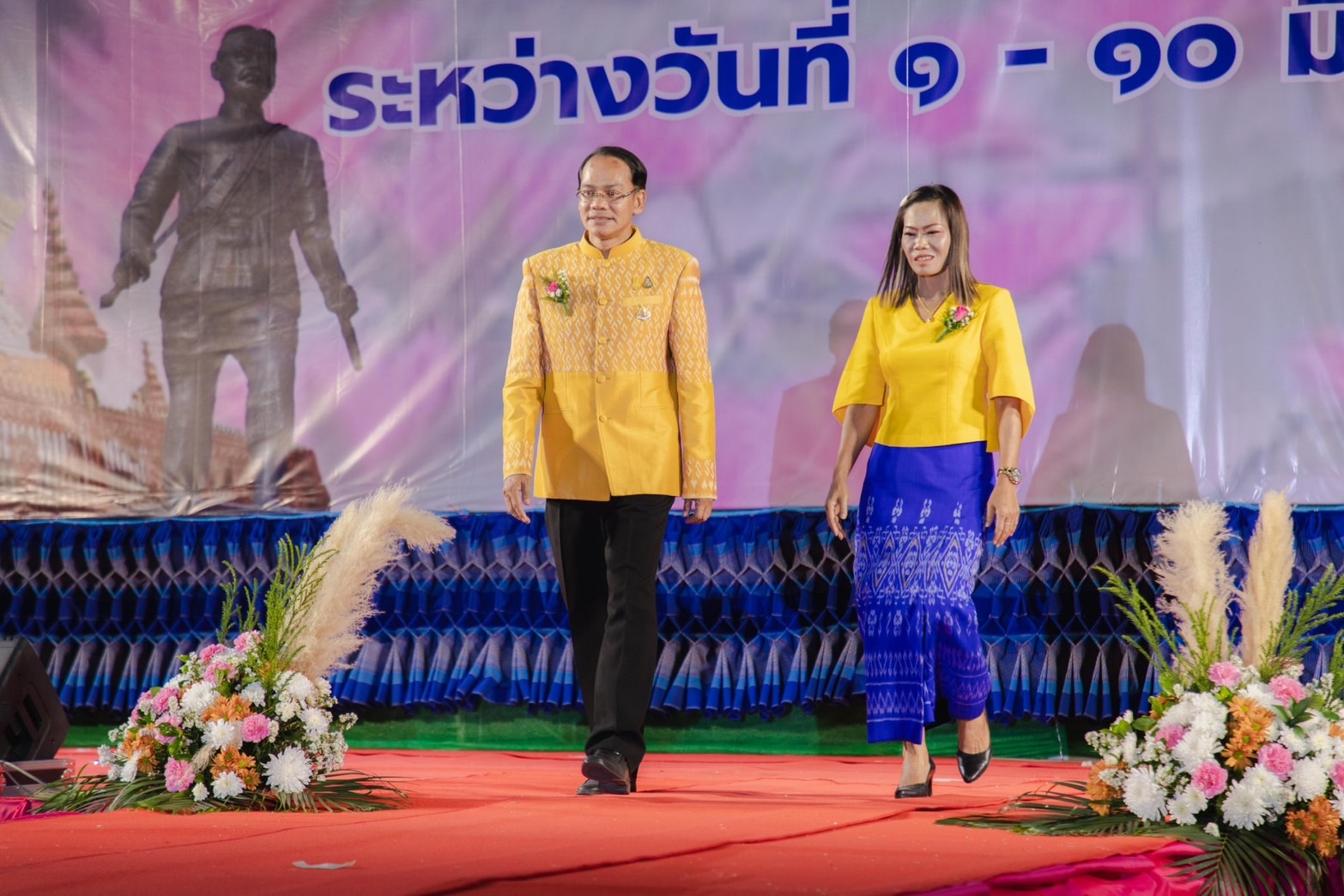 นายชรินทร์ ทองสุข ผู้ว่าราชการจังหวัดยโสธร มอบหมาย นายสุวัฒน์ เข็มเพชร นายชาญชัย ศรศรีวิชัย รองผู้ว่าราชการจังหวัดยโสธร พร้อมด้วย รองนายกเหล่ากาชาดจังหวัดยโสธร นำทีม หัวหน้าส่วนราชการ ภาคเอกชน ส่วนราชการท้องถิ่น ประชาชน ร่วมงานเดินแบบ เดินแบบชุดผ้าไทยพื้นเมือง เพื่อการกุศลงานสถาปนาจังหวัดยโสธร ประจำปี 2567 โดยมีนายบรรลือ พลับพลึง พัฒนาการจังหวัดยโสธร ในนามเลขานุการคณะกรรมการจัดงานเดินแบบผ้าไทยชุดผ้าไทยพื้นเมือง เพื่อการกุศลงานสถาปนาจังหวัดยโสธร ประจำปี 2567