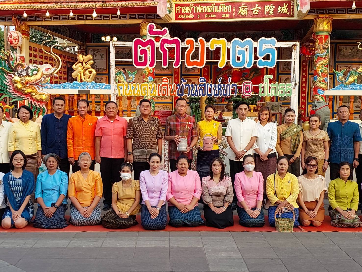 นายชรินทร์ ทองสุข ผู้ว่าราชการจังหวัดยโสธร พร้อมด้วย นางสินีนาฎ ทองสุข ประธานแม่บ้านมหาดไทยจังหวัดยโสธร นายชาญชัย ศรศรีวิชัย รองผู้ว่าราชการจังหวัด ปลัดจังหวัดยโสธร พร้อมด้วย หัวหน้าส่วนราชการ และพุทธศาสนิกชน ร่วมทำบุญตักบาตรย้อนยุค วิถีถิ่น วิถีไทย ถนนคนเดินยโสธร เมืองเก่าบ้านสิงห์ท่า เพื่อเป็นการแสดงความจงรักภักดีและร่วมบำเพ็ญกุศลเพื่อถวายพระราชกุศล แด่สมเด็จพระเจ้าลูกเธอ เจ้าฟ้าพัชรกิติยาภา นเรนทิราเทพยวดี กรมหลวงราชสาริณีสิริพัชร มหาวัชรราชธิดา ให้ทรงหายจากพระอาการประชวรรวมถึงเป็นการรณรงค์ร่วมกันสวมใส่ผ้าไทยตามโครงการ “ผ้าไทยใส่ให้สนุก” ตามโครงการ “ผ้าไทยใส่ให้สนุก” ตามพระดำริ สมเด็จพระเจ้าลูกเธอ เจ้าฟ้าสิริวัณณวรี นารีรัตนราชกัญญา ณ ถนนคนเดินยโสธร เมืองเก่าบ้านสิงห์ท่า อำเภอเมือง จังหวัดยโสธร