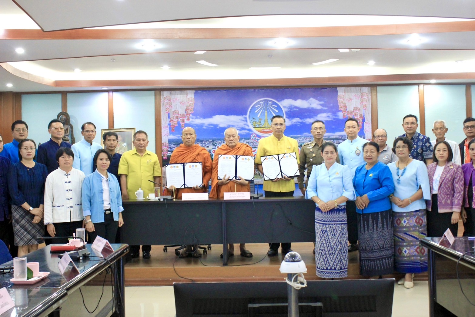 พช.ยโสธรร่วมกิจกรรม MOU ความร่วมมือบทบาทในการเกื้อหนุนระหว่างวัดและชุมชนให้มีความสุขอย่างยั่งยืน จังหวัดยโสธร