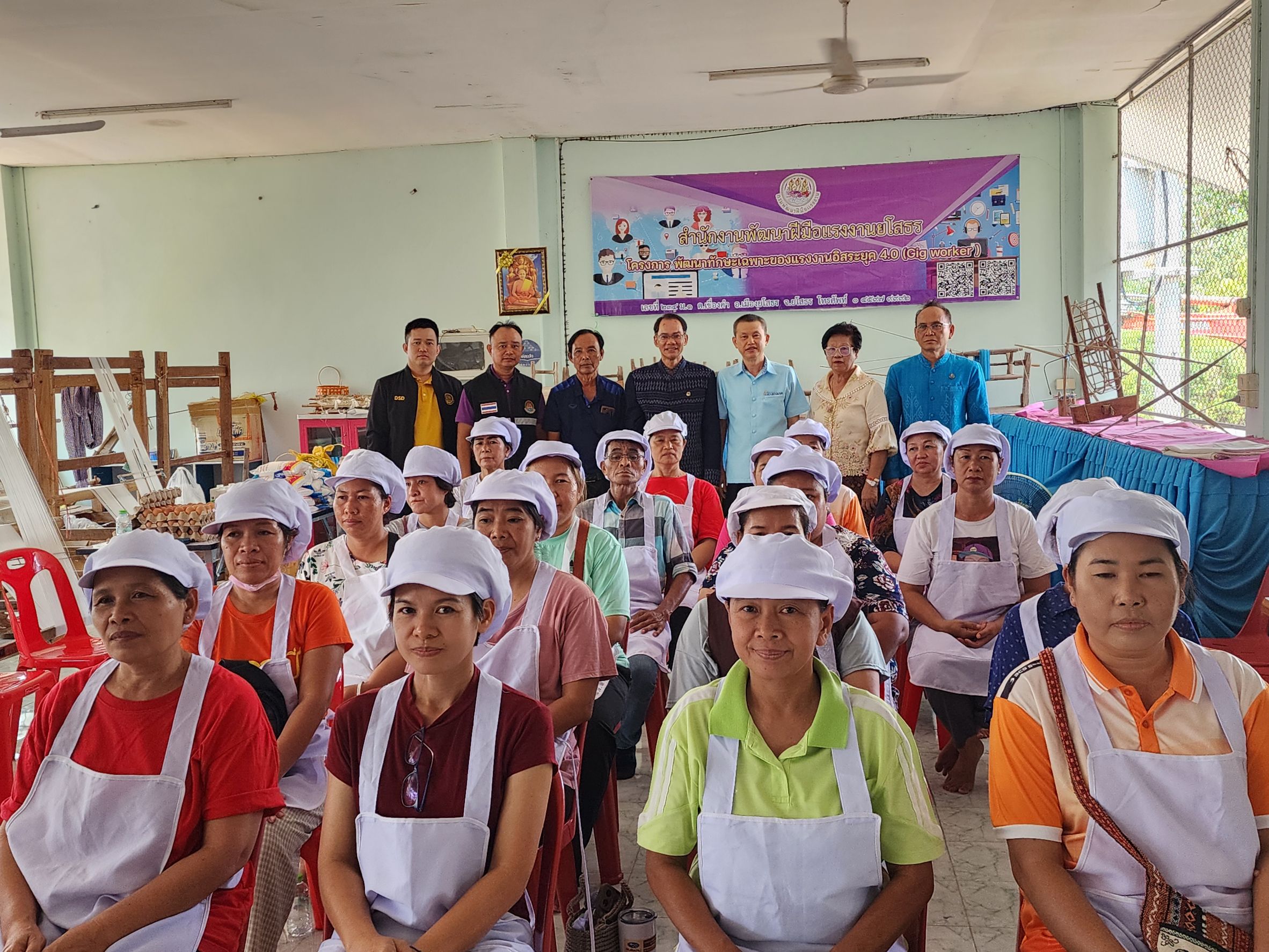 พช.ยโสธร ร่วมพิธีเปิดโครงการส่งเสริมอาชีพการทำขนมของสำนักงานพัฒนาฝีมือแรง งานจังหวัดยโสธร