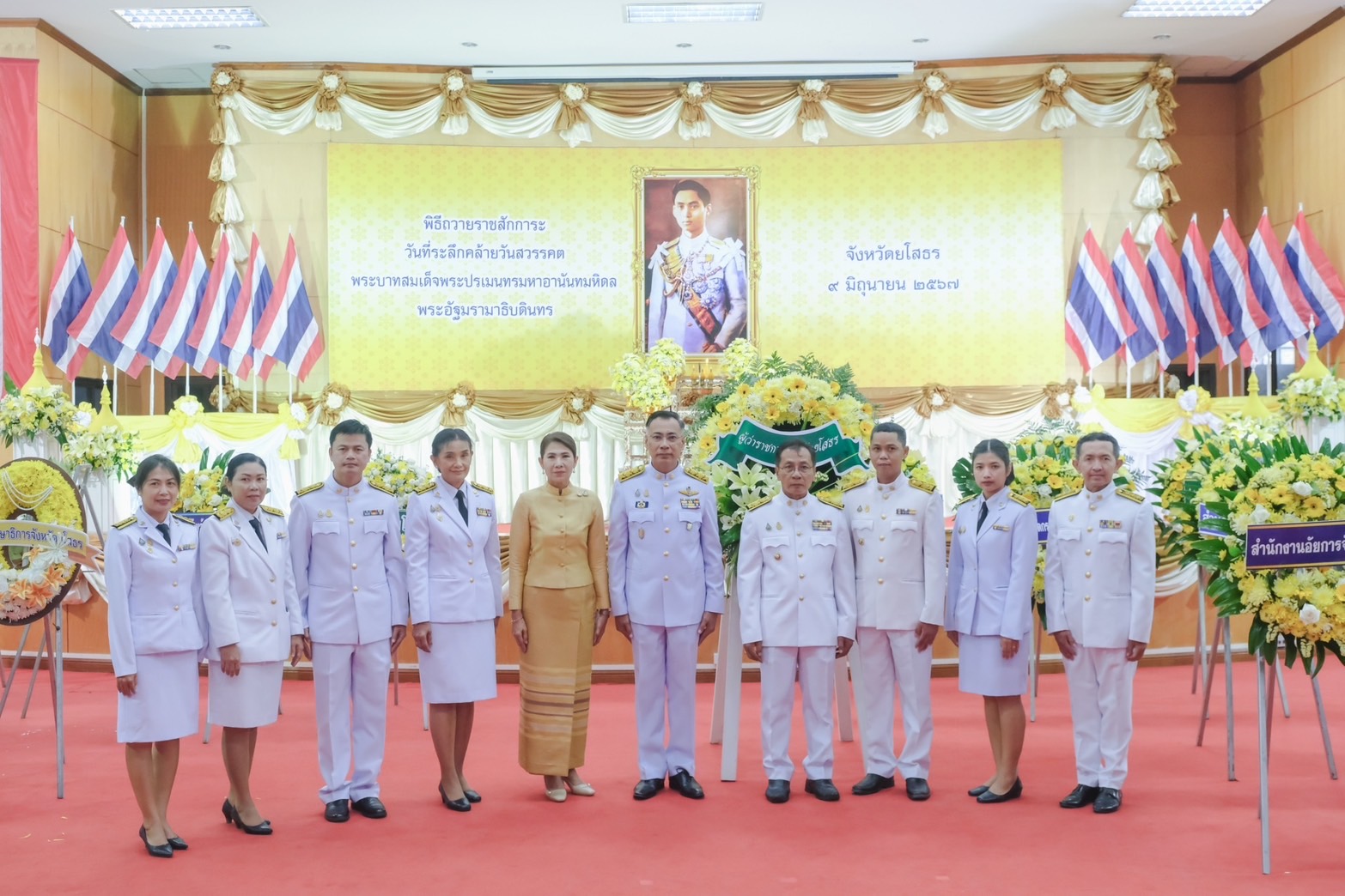 นายชรินทร์ ทองสุข ผู้ว่าราชการจังหวัดยโสธร นำคณะผู้บริหาร หัวหน้าส่วนราชการ และพสกนิกรชาวยโสธร ทุกหมู่เหล่า ร่วมพิธีวางพวงมาลาเนื่องในวันคล้ายวันสวรรคต พระบาทสมเด็จพระปรเมนทร มหาอานันทมหิดล พระอัฐมรามาธิบดินทร (วันอานันทมหิดล) 9 มิถุนายน 2567