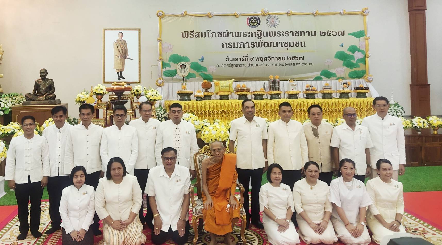 📢 นายสยาม ศิริมงคล อธิบดีกรมการพัฒนาชุมชน มอบหมายให้ นายวรงค์ แสงเมือง รองอธิบดีกรมการพัฒนาชุมชน เป็นประธานพิธีสมโภชผ้าพระกฐินพระราชทานกรมการพัฒนาชุมชน ประจำปีพุทธศักราช 2567 ณ วัดศรีสุทธาวาส พระอารามหลวง ตำบลกุดป่อง อำเภอเมืองเลย จังหวัดเลย โดยมี ผู้ตรวจราชการกรมการพัฒนาชุมชน คณะผู้บริหารกรมการพัฒนาชุมชน ผู้บริหารสำนักงานพัฒนาชุมชนจังหวัดทุกจังหวัด เข้าร่วมพิธีฯ อย่างพร้อมเพรียง
