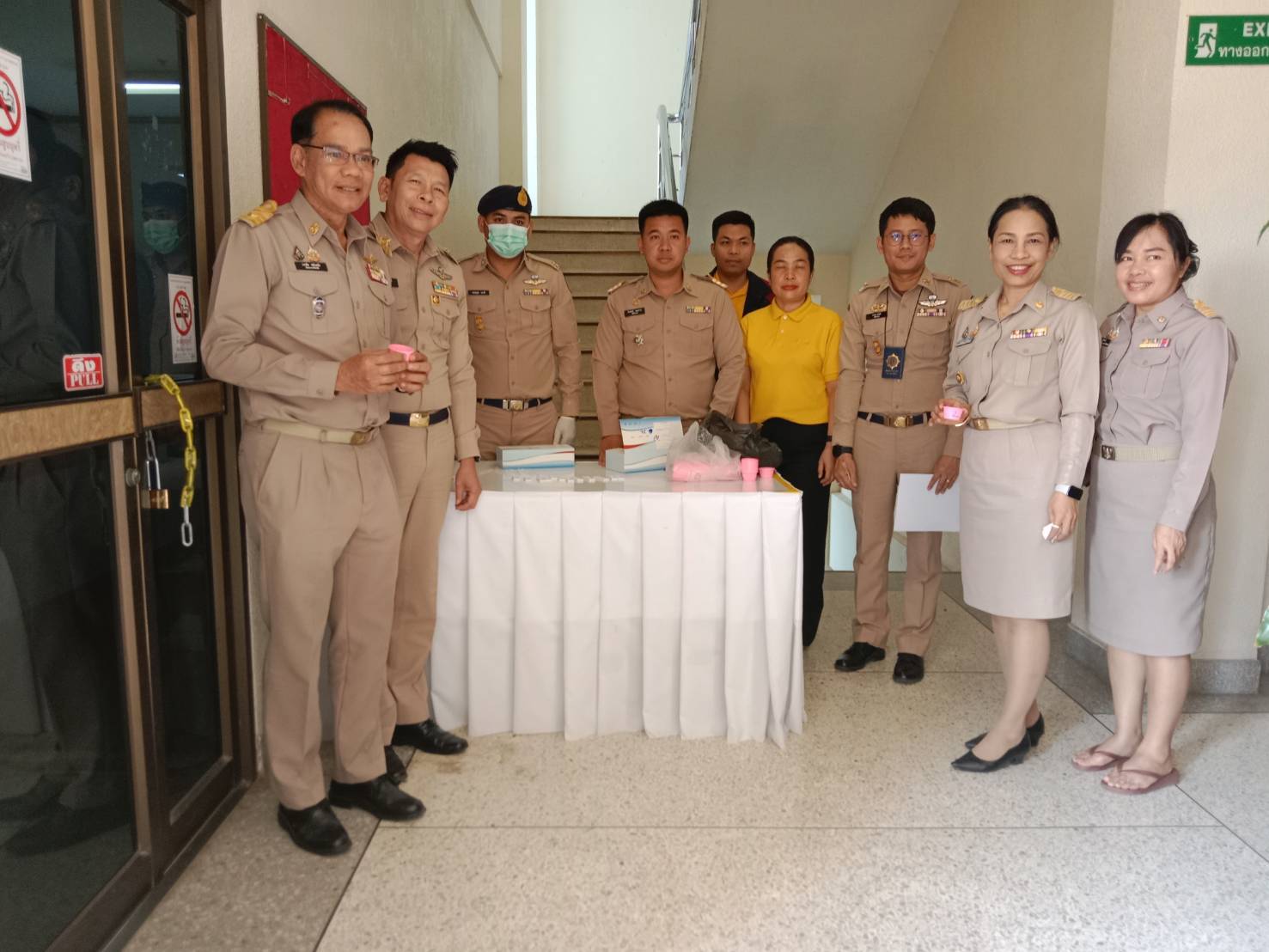 🔵 สำนักงานพัฒนาชุมชนจังหวัดยโสธร โดยการนำของ นายบรรลือพลับพลึง พัฒนาการจังหวัดยโสธร นำทีมข้าราชการ ลูกจ้าง รวมทั้งหมด 25 คน เข้าร่วมดำเนินการขับเคลื่อนโครงการมหาดไทยสีขาว สร้างพื้นที่ปลอดภัย หยุดยั้งยาเสพติด (Safe Zone No Drugs) ร่วมกับแผนยุทธการ “ยศสุนทรพิทักษ์ ปฏิบัติการกวาดล้างยาเสพติดแบบบูรณาการ” ดำเนินการในมิติกวาดบ้านตัวเอง โดยได้สุ่มตรวจหาสารทเสพติดในปัสสาวะ ผลการตรวจไม่พบสารเสพติดในปัสสาวะแต่อย่างใด
