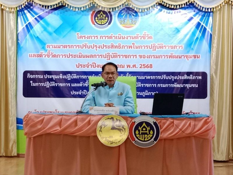 🔵 นายบรรลือ พลับพลึง พัฒนาการจังหวัดยโสธร มอบนโยบายการดำเนินงานตามตัวชี้วัดตามมาตรการปรับปรุงประสิทธิภาพในการปฏิบัติราชการและตัวชี้วัดการประเมินผลการปฏิบัติราชการกรมการพัฒนาชุมชนประจำปี 2568