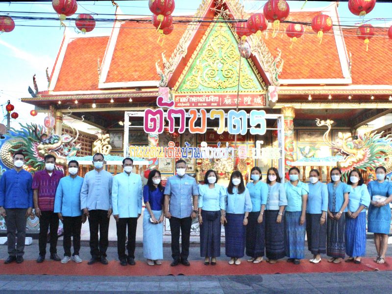 พ่อเมืองยโสธร นำหัวหน้าส่วนราชการ ข้าราชการ ประชาชนชาวจังหวัดยโสธร ร่วมทำบุญตักบาตรย้อนยุค และร่วมกันสวมใส่ผ้าไทยสีฟ้า (สีประจำจังหวัดยโสธร) ตามโครงการ “ผ้าไทยใส่ให้สนุก”