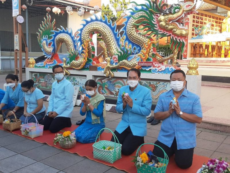?พช.ยโสธรร่วมทำบุญตักบาตรย้อนยุค และร่วมกันสวมใส่ผ้าไทยสีฟ้า (สีประจำจังหวัดยโสธร) ตามโครงการ “ผ้าไทยใส่ให้สนุก”