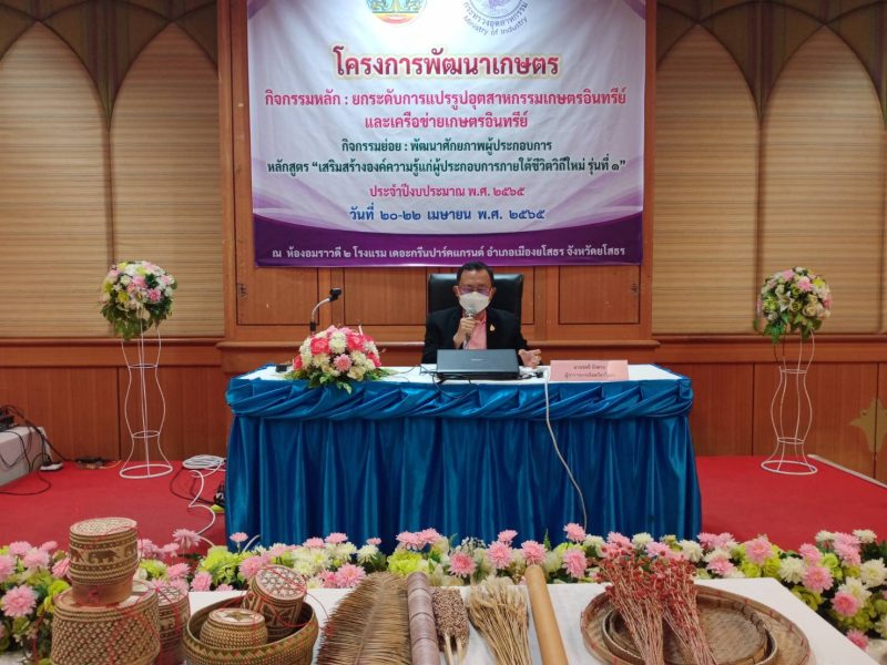 พช.ยโสธร ร่วมเปิดงานโครงการพัฒนาเกษตร กิจกรรมหลัก : ยกระดับการแปรรูปอุตสาหกรรมเกษตรอินทรีย์และเครือข่ายเกษตรอินทรีย์ กิจกรรมย่อย : พัฒนาศักยภาพผู้ประกอบการ หลักสูตร “เสริมสร้างองค์ความรู้แก่ผู้ประกอบการภายใต้ชีวิตวิถีใหม่ รุ่นที่ 1” ประจำปีงบประมาณ พ.ศ.2565
