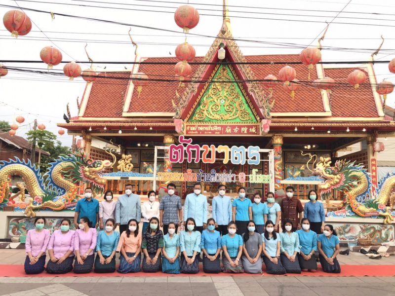 พช.ยโสธร ร่วมอนุรักษ์ศิลป์ผ้าถิ่นไทย สวมผ้าไทยใส่ให้สนุก ให้ทันสมัย ทำบุญตักบาตรย้อนยุควิถีถิ่นวิถีไทย และจำหน่ายสินค้า OTOP ณ ถนนคนเดินยโสธร เมืองเก่าบ้านสิงห์ท่า