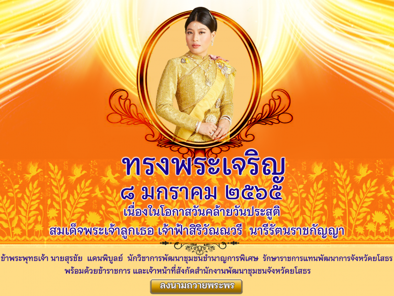 พช.ยโสธร จัดกิจกรรมเฉลิมพระเกียรติเนื่องในวันคล้ายวันประสูติของสมเด็จพระเจ้าลูกเธอ เจ้าฟ้าสิริวัณณวรี นารีรัตนราชกัญญา