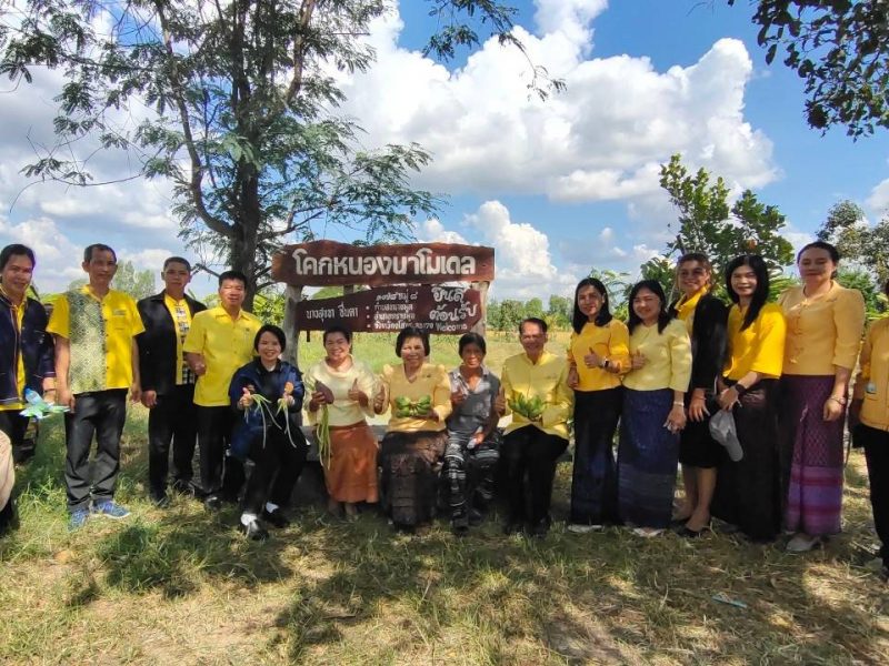 ผู้ตรวจราชการกรมฯ…ลงพื้นที่ตรวจติดตามผลการดำเนินงานแปลงโคกหนองนา พื้นที่อำเภอทรายมูล จังหวัดยโสธร