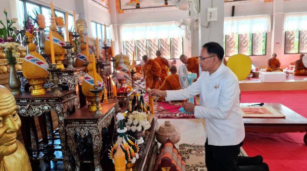 พช.ยโสธร นายบรรลือ พลับพลึง พัฒนาการจังหวัดยโสธร เป็นประธานถวายภัตตาหารเพลและน้ำปานะ
