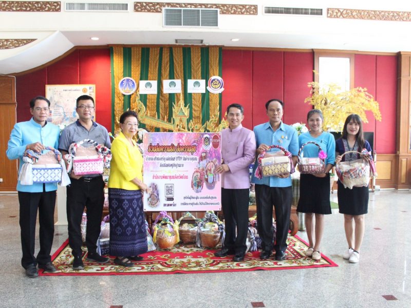 พช.ยโสธร ส่งมอบกระเช้าของขวัญสินค้า OTOP จังหวัดยโสธร ให้กับผู้บริหารโรงแรมเจ พี เอ็มเมอรัลด์ จังหวัดยโสธร